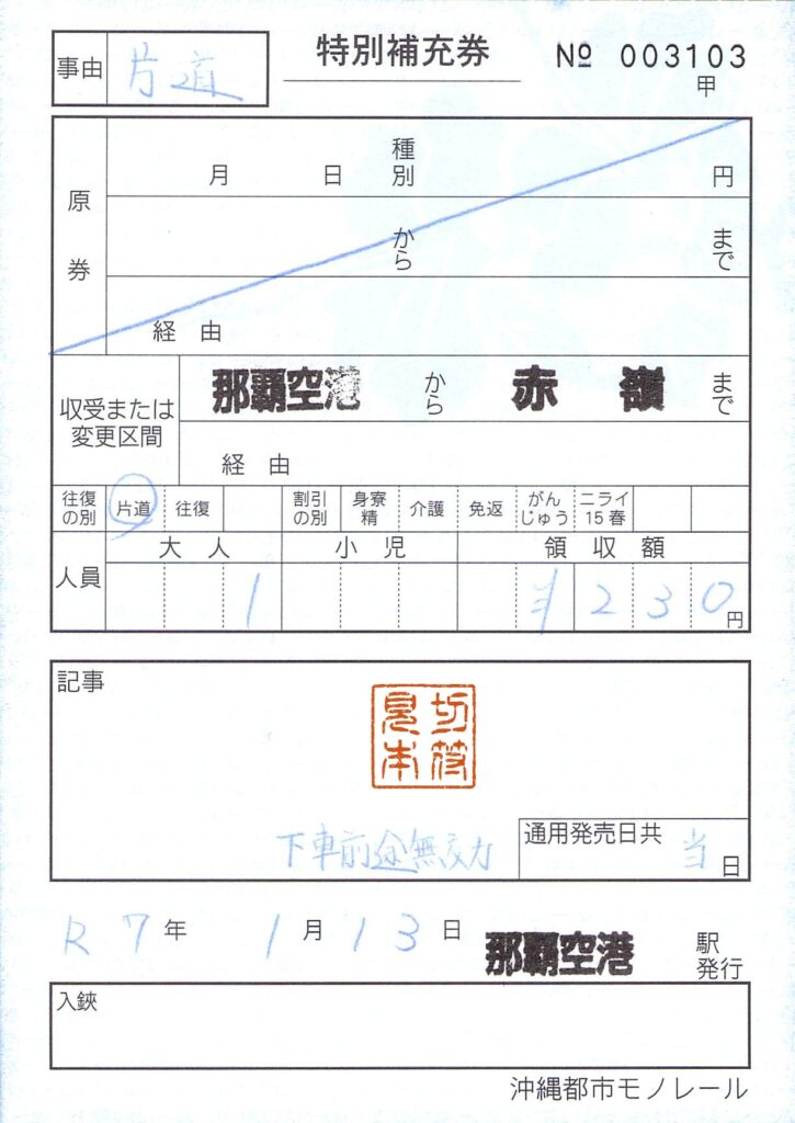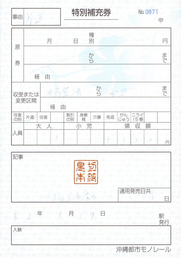 今回は沖縄都市モノレールの補充券を紹介します
