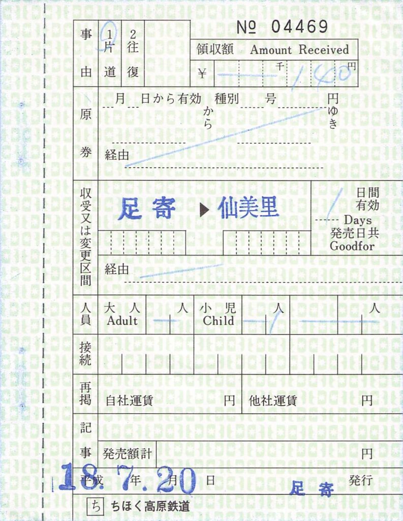ホーム > きっぷ情報ライブラリ > 01-北海道 > ちほく高原鉄道