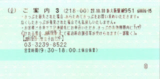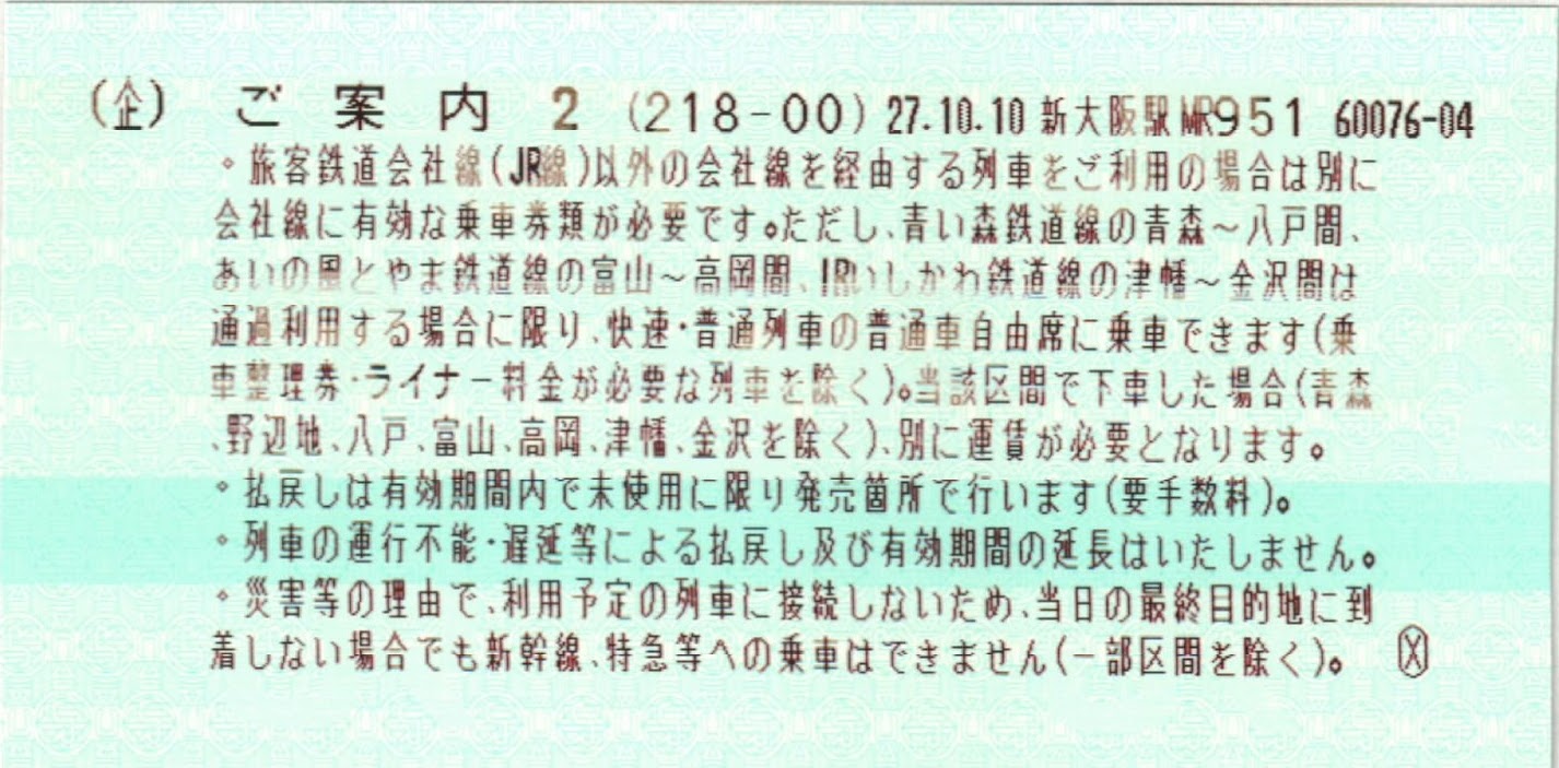 JR東海~秋の乗り放題パス JR東海 X Facebook はてブ LINE コピー 2017.01.15 2015年10月、日比谷公園の鉄道フェスティバルに出かけました。(かなり前の話ですが・・・) 色々な切符を購入しましたが、それは後日紹介するとしまして、今回からは出かけるのに使った切符などを紹介します。 秋の乗り放題パスです。 予め利用する日付を指定するタイプの切符ですが、自動改札に対応した85mm券ではなく、120mm券で発行されました。 切符の上半分や右半分は18切符に何となく似ています。 尚、北海道新幹線開業前の切符のため、案内の表記が現在のものと異なります。