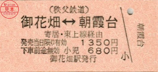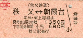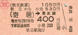 秩父鉄道~硬券つかみ取り(4) 秩父鉄道 X Facebook はてブ LINE コピー 2017.02.16 硬券つかみ取りシリーズの続きです。 今回は連絡乗車券を紹介します。 東武鉄道、西武鉄道への連絡乗車券です。 金額式、駅名式が含まれています。 連絡乗車券の着札は連絡先の業者で廃棄されるためか、含まれていませんでした。 日付、入鋏も入っておらず、税率改定に伴う廃札と考えられます。