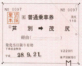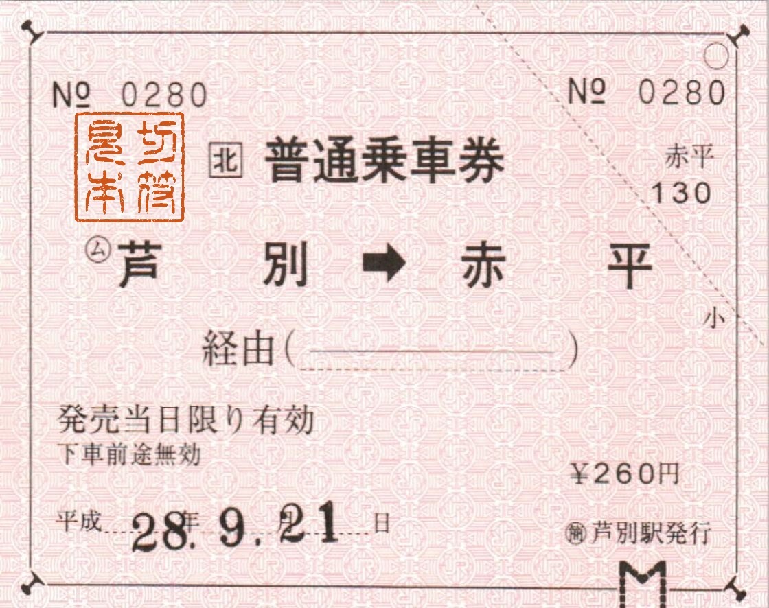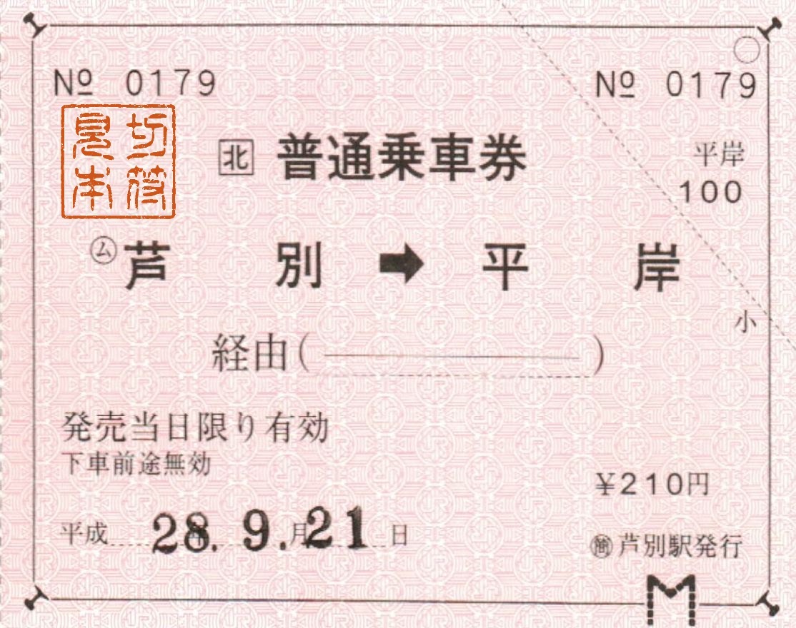 JR北海道~芦別駅常備券 JR北海道 X Facebook はてブ LINE コピー 2017.05.17 翌日、滝川駅からの根室本線の初電で芦別駅に向かいました。 私が訪問する少し前に北海道は台風の甚大な被害を受け、ダイヤが大幅に乱れており、ダイヤの変更などを当日朝に知る、というアクシデントがありました。