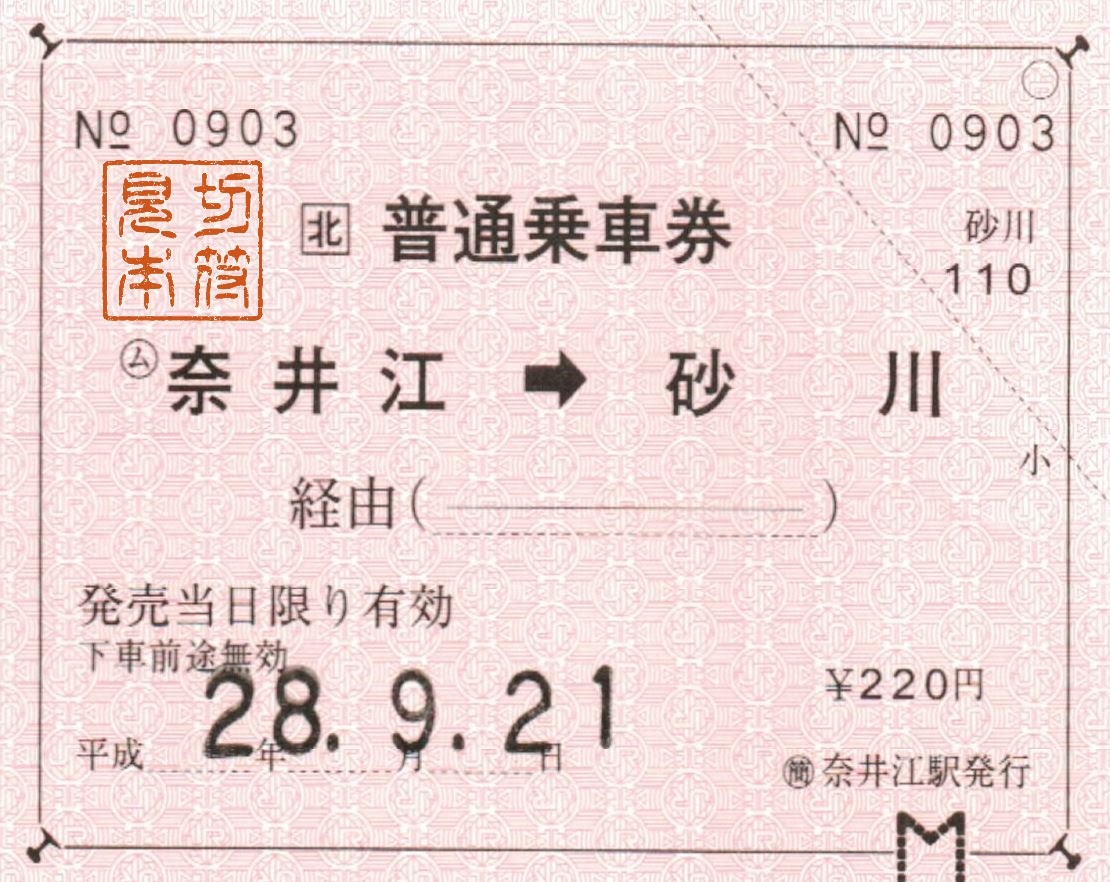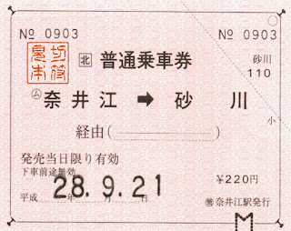 JR北海道~奈井江駅常備券 JR北海道 X Facebook はてブ LINE コピー 2017.05.25 滝川駅からは普通列車で奈井江駅に移動しました。 奈井江駅には常備券の設備があります。 他の駅と比べ、日付印がやや大きい印象があります。