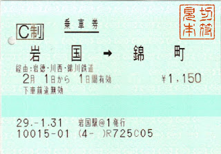 JR西日本~錦川鉄道連絡乗車券 JR西日本 X Facebook はてブ LINE コピー 2017.11.26 翌朝、岩国駅(正確には川西駅)から錦川鉄道に乗車しました。 前日に岩国駅のみどりの窓口にて、連絡乗車券を購入しました。 錦川鉄道の運賃はマルスに収載されているようで、85mm券で発行されました。 因みに、この切符を購入したのは夜でしたが、券番は15番でした。あまり進んでいないようです。