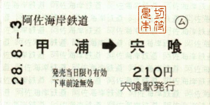 阿佐海岸鉄道~甲浦駅乗車券 常備券 X Facebook はてブ LINE コピー 2018.01.07 甲浦駅は簡易委託駅になっており、自社完結のまでの常備軟券を発売しています。 勿論この券も通信販売で購入可能です。