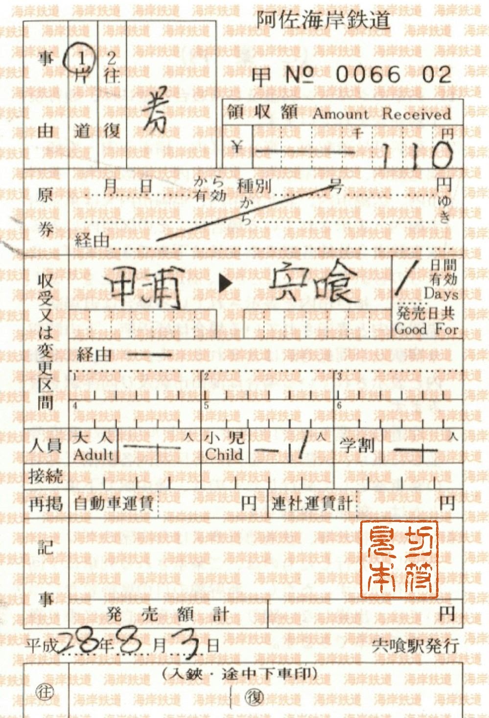 阿佐海岸鉄道~出札補充券