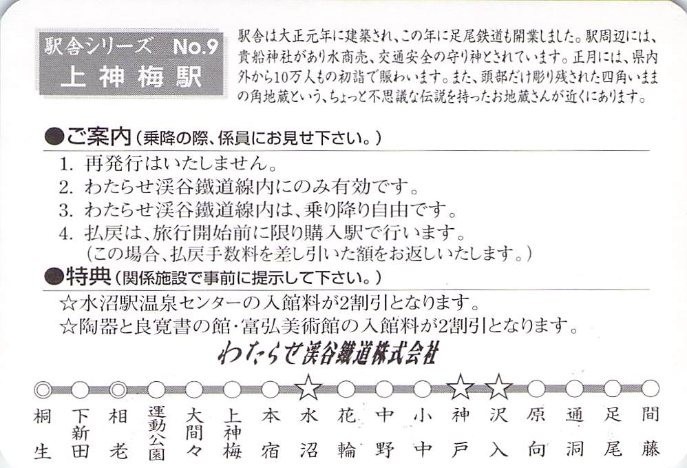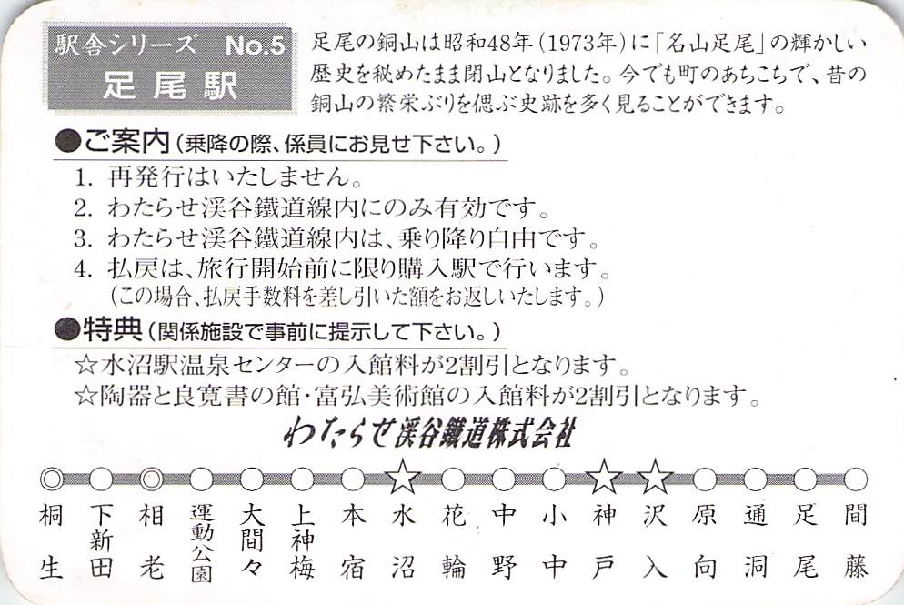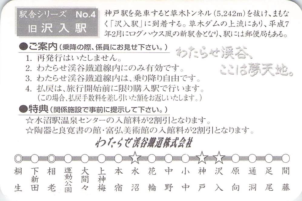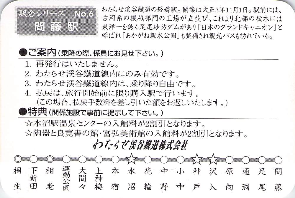 ホーム > きっぷ情報ライブラリ > 03-関東地方 > (10)群馬県 > わたらせ渓谷鉄道