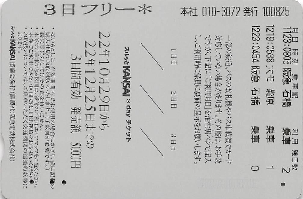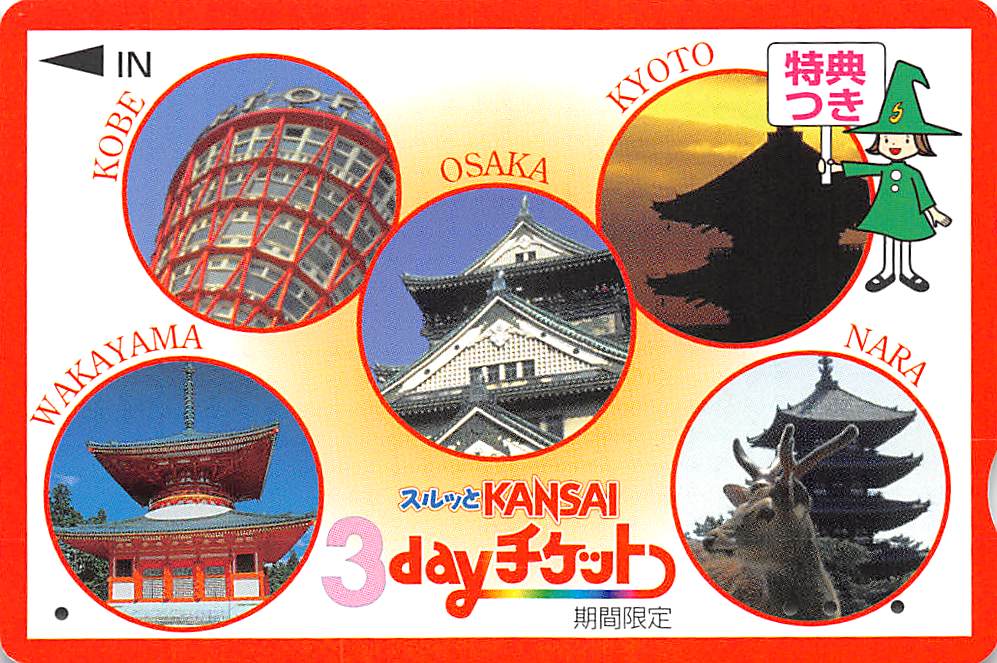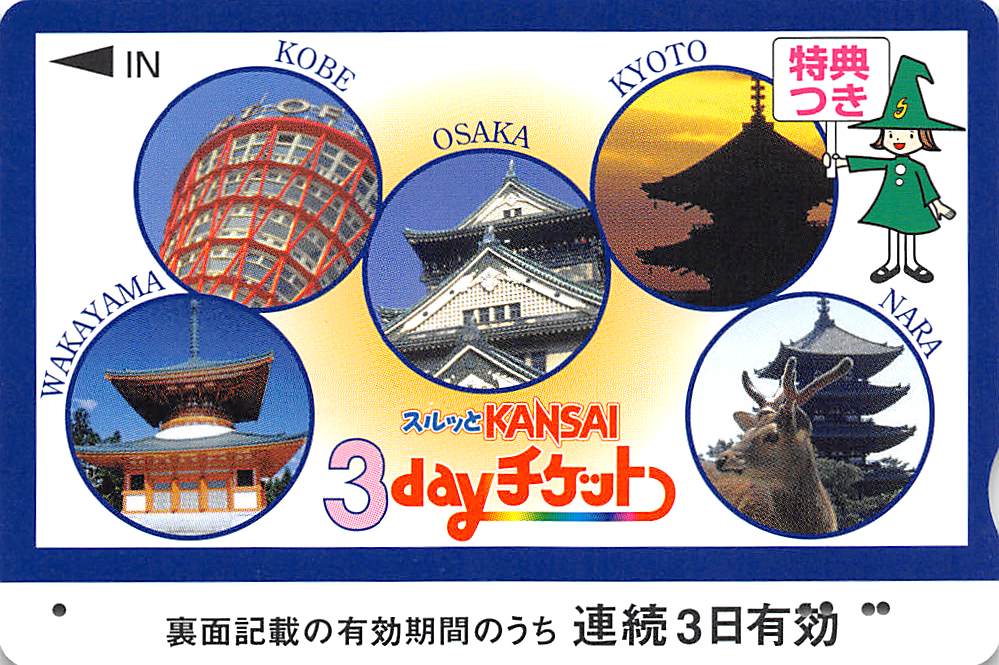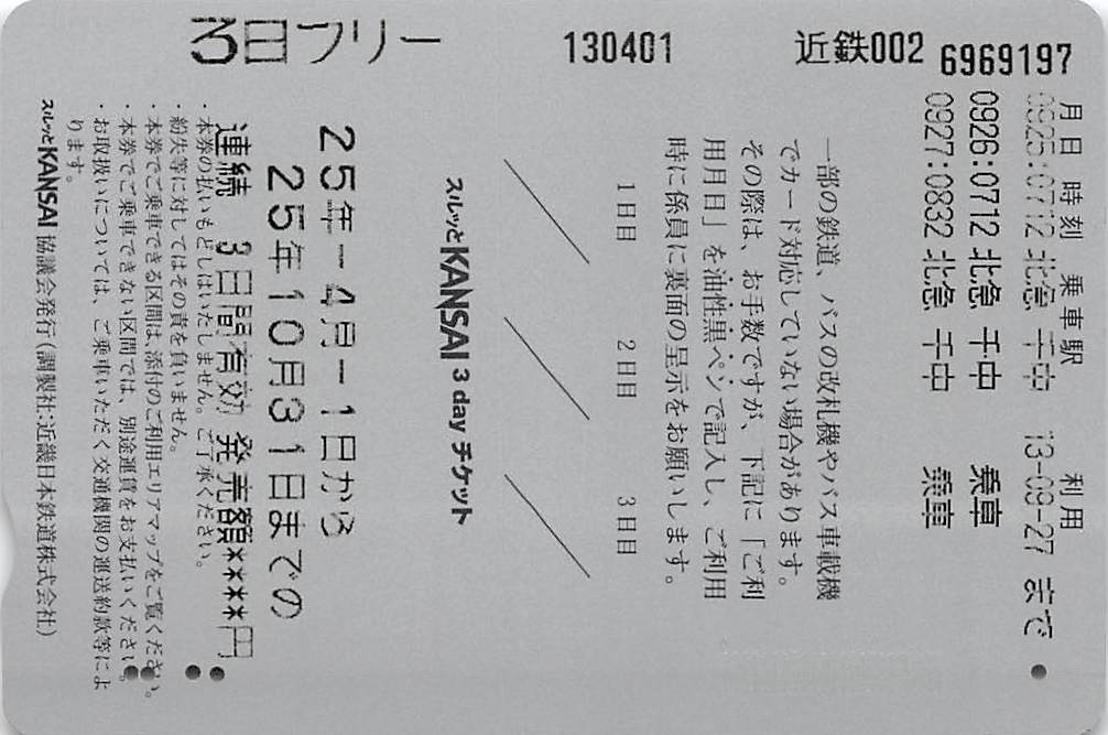 こちらは連続3日間有効のものです。関西地区以外でバウチャー券などを発行し、窓口等で引き換えたものです