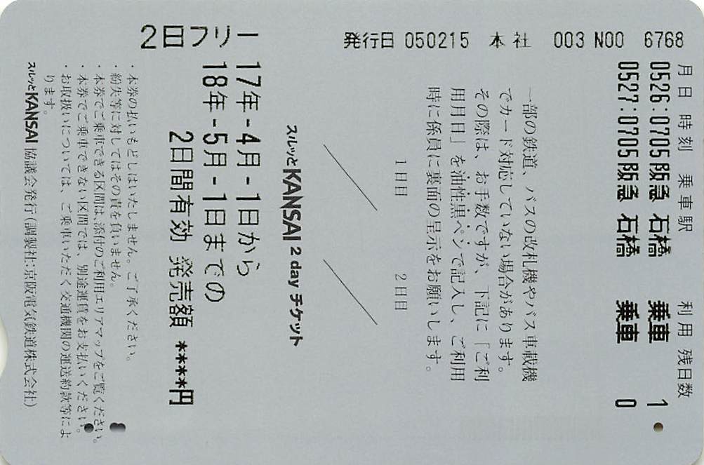 こちらは2日間用です。こちらも関西地区以外で発売されていました