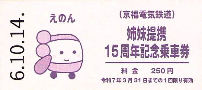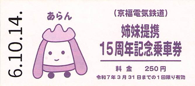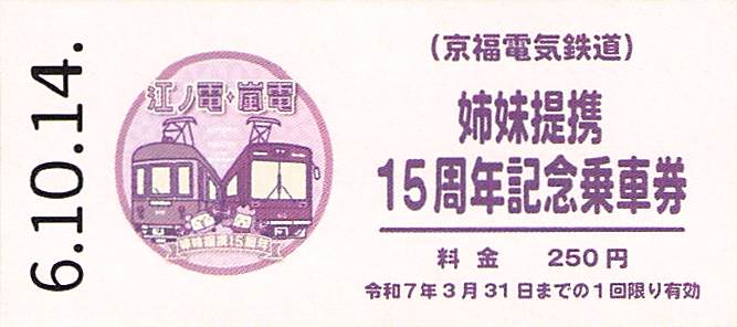京福電気鉄道-姉妹提携15周年記念乗車券
