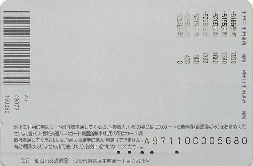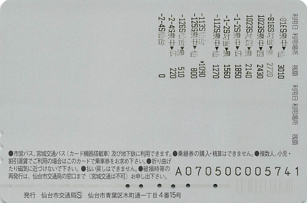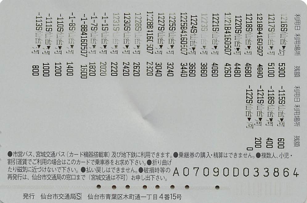 仙台市交通局・宮城交通-ジョイカード