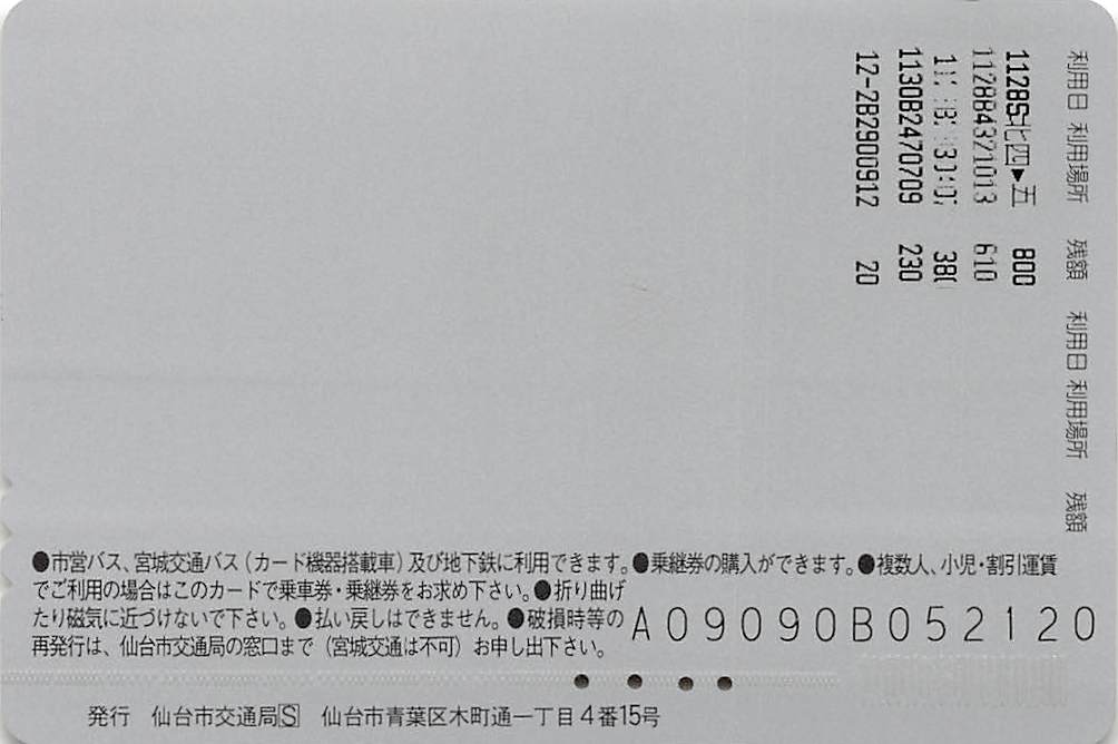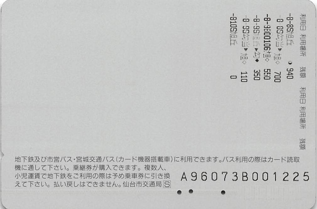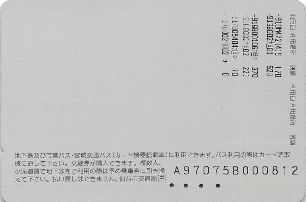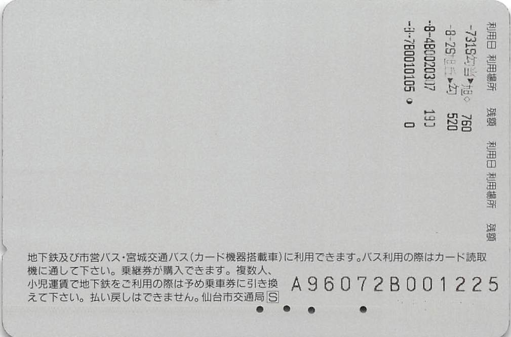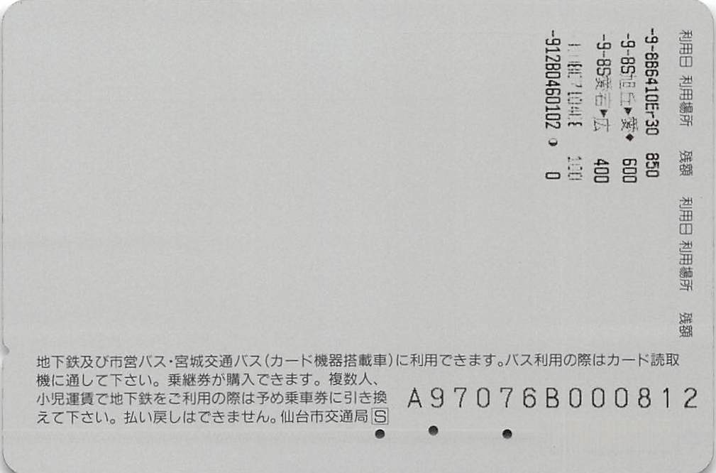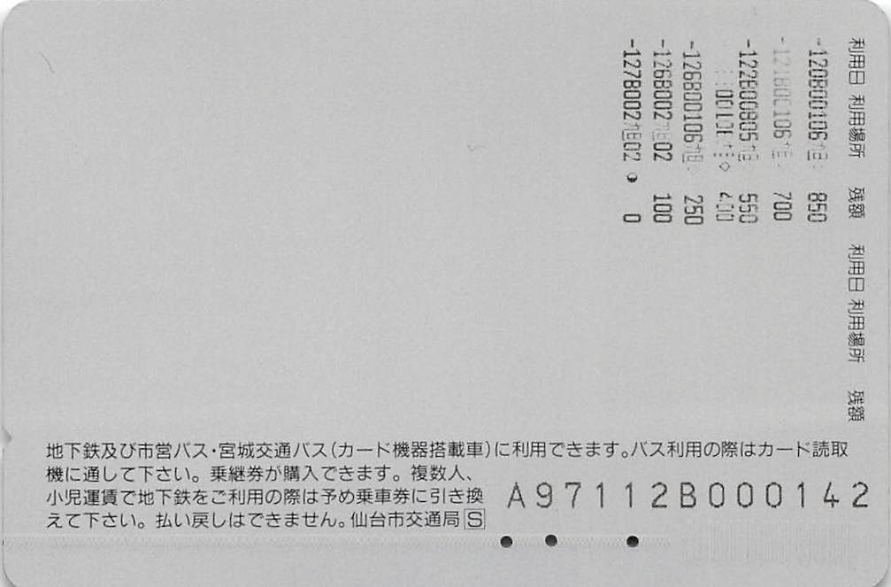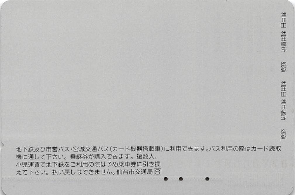 先週に引き続き、仙台市交通局のスキップカードを紹介します