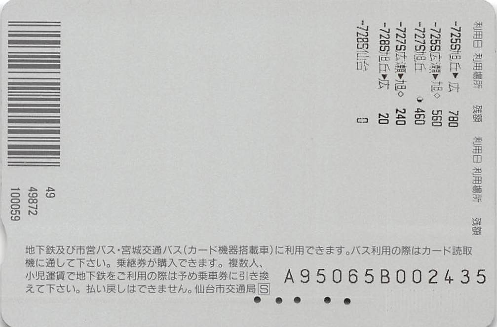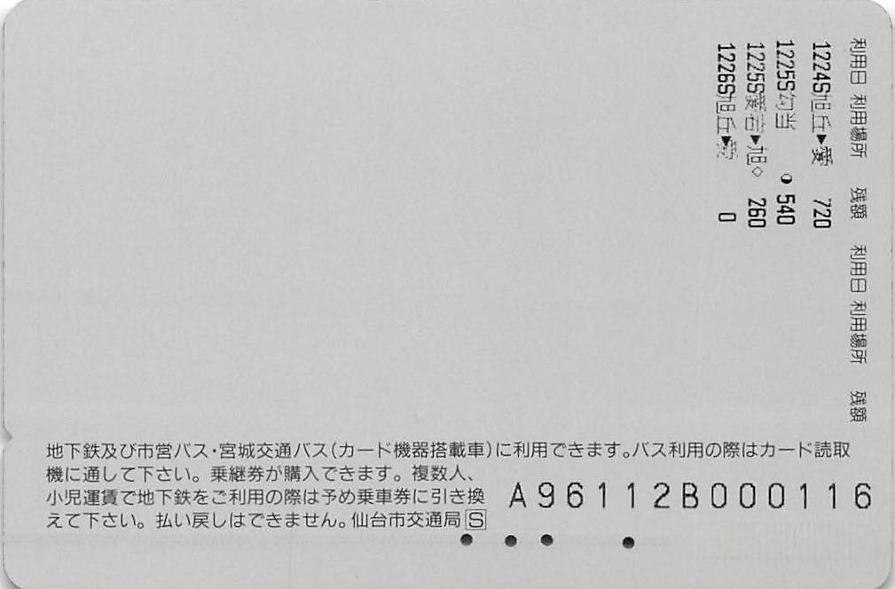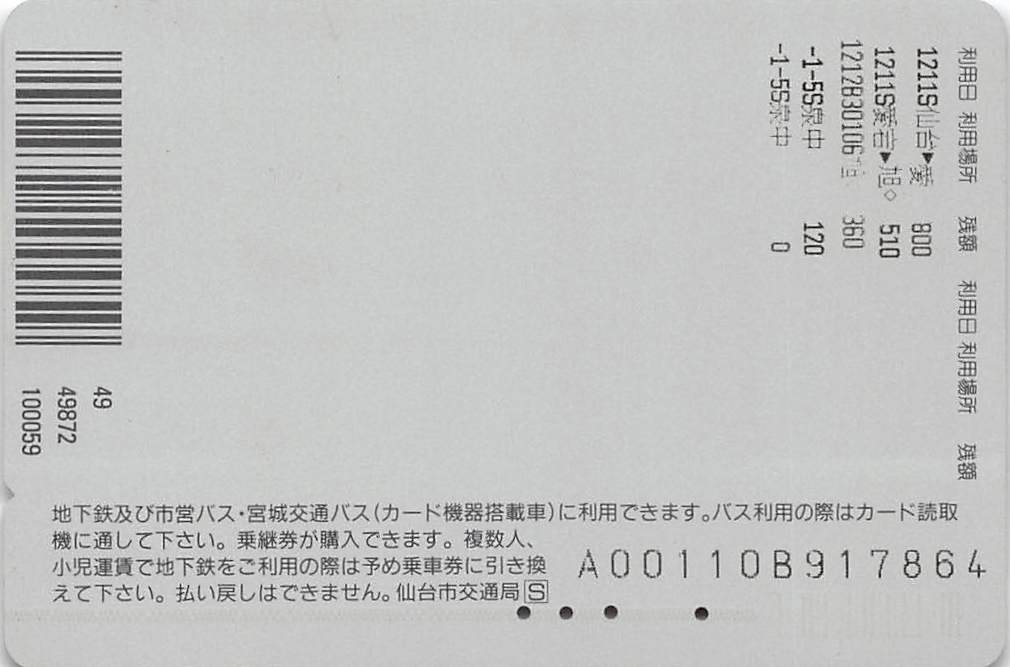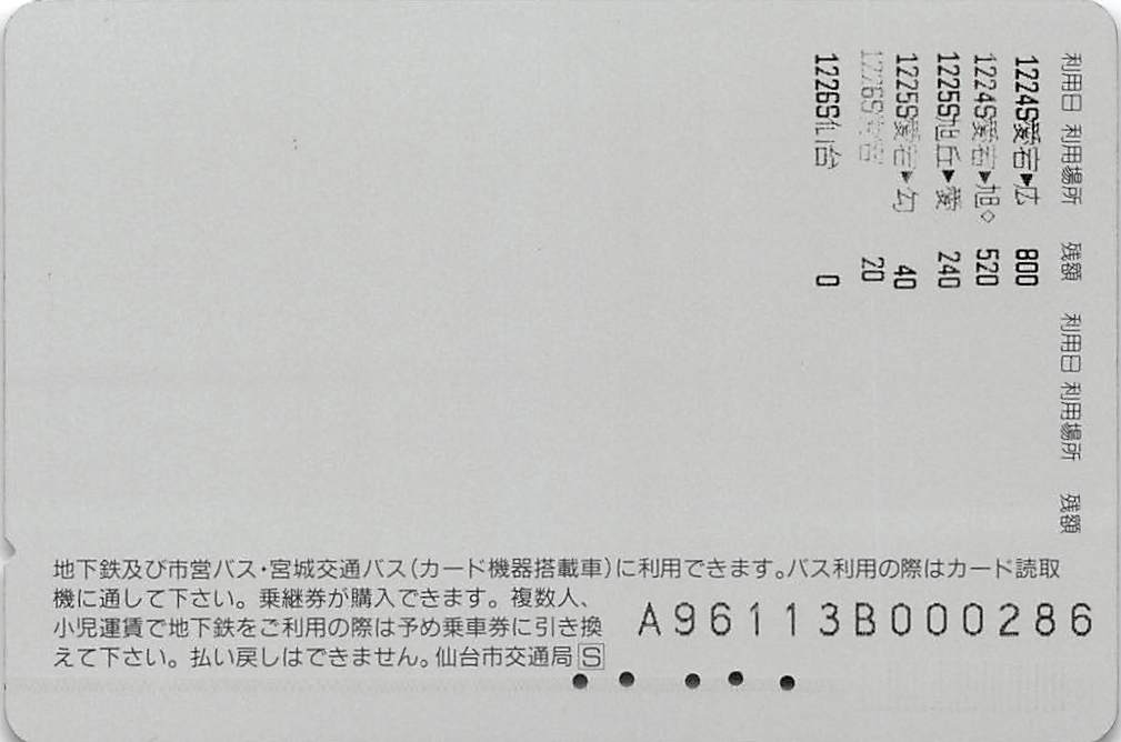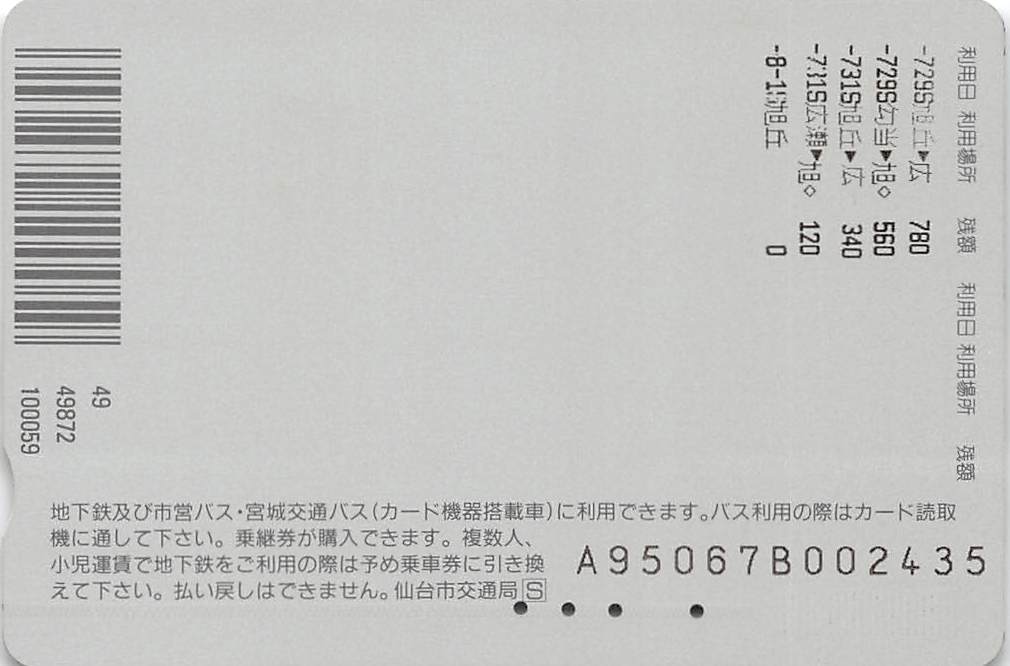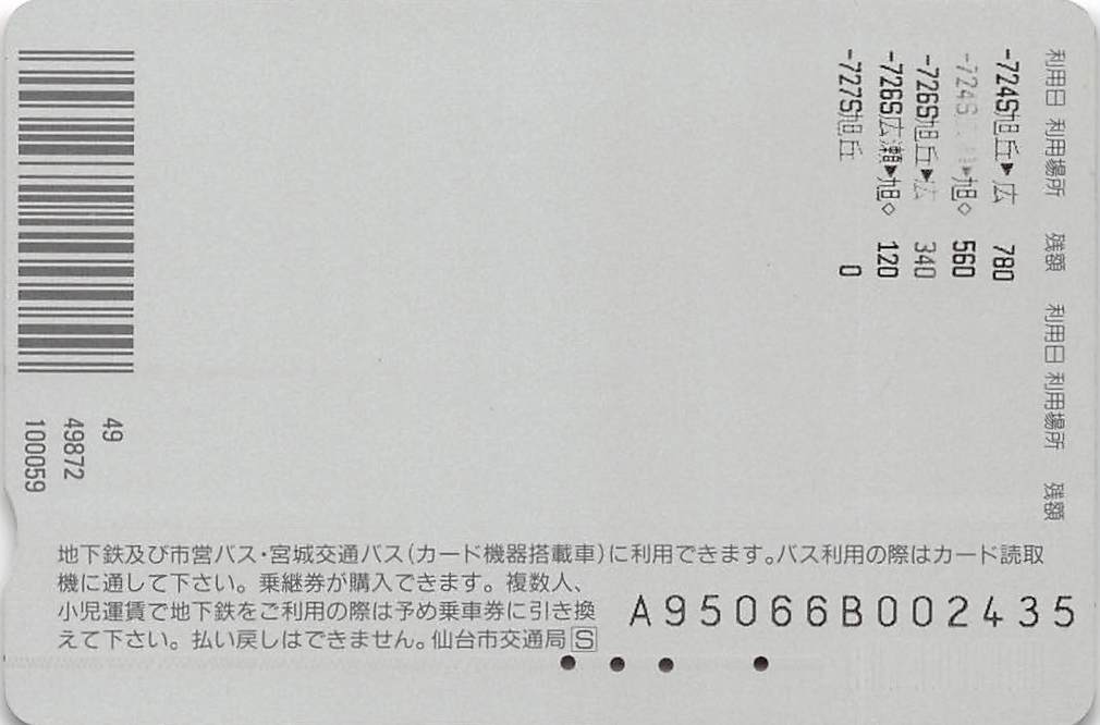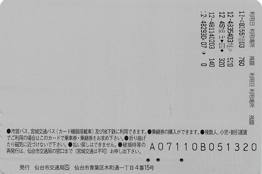 先週に引き続き、仙台市交通局のスキップカードを紹介します