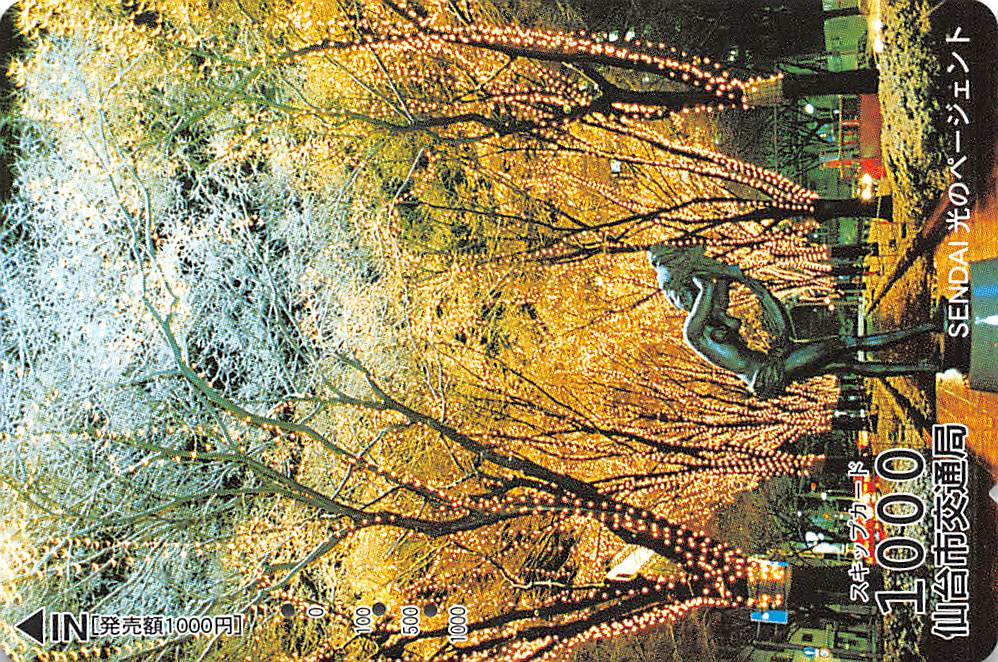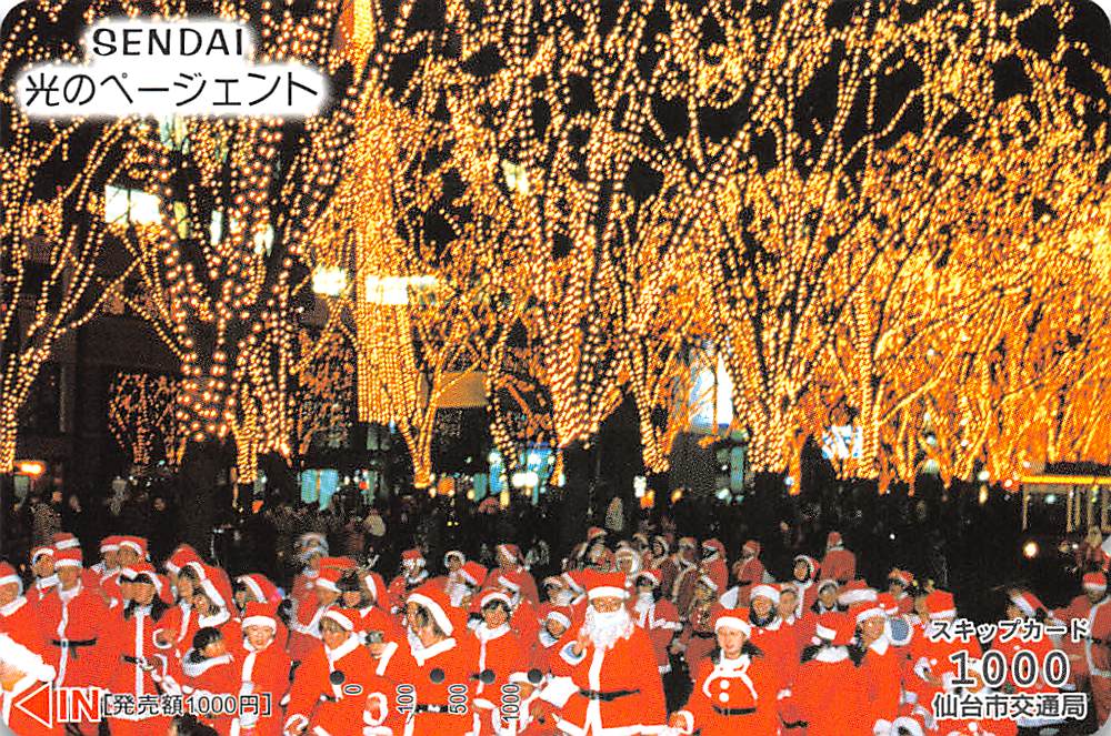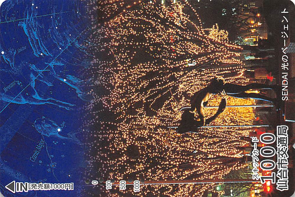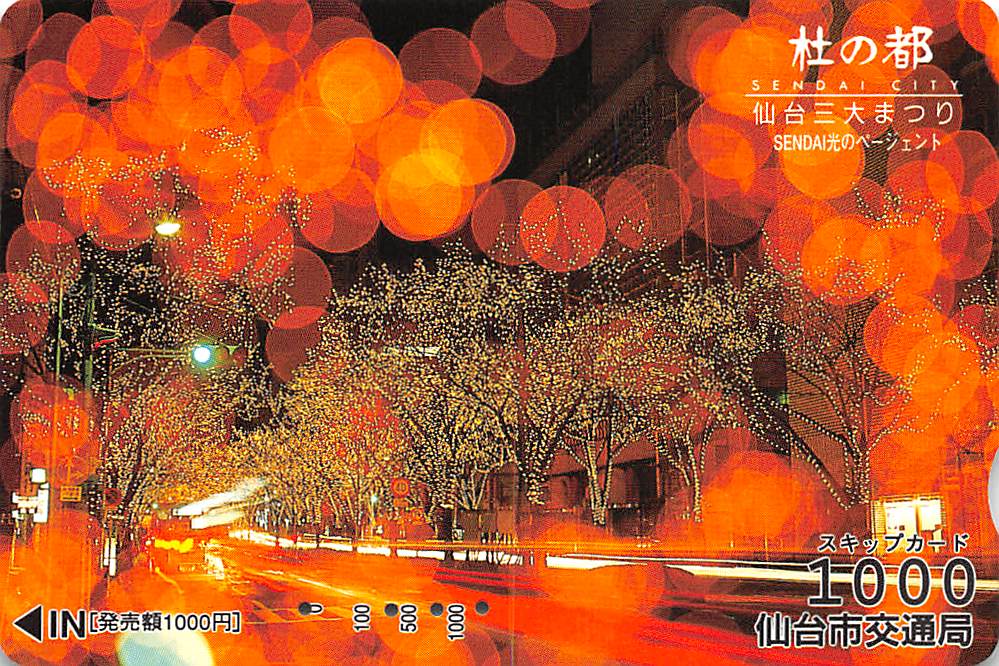 Wikipediaによると、SENDAI光のページェントは、定禅寺通と青葉通のケヤキ並木に数十万に上る数のLEDを取り付けて点灯するイルミネーションイベントだそうです。記事を作成するのにあたり、私のコレクションを調べていたところ、このイベントのカードが地味に多かったです