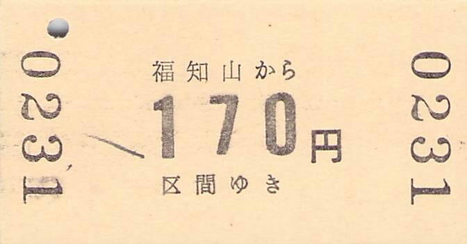 福知山駅の硬券乗車券です。運賃改定前後のものです