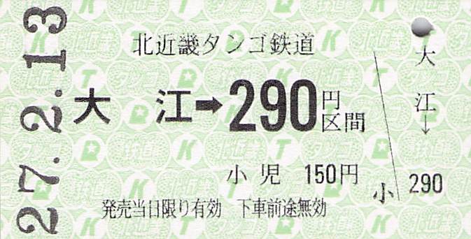 今回は北近畿タンゴ鉄道の硬券入場券を紹介します