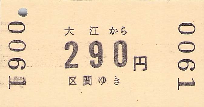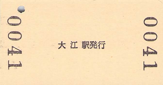 大江駅発行の硬券乗車券・特急券です。特急券は自社線内、JR連絡によって様式が異なりました。JR連絡のものは現在では存在しないB特急料金に対応したものです。