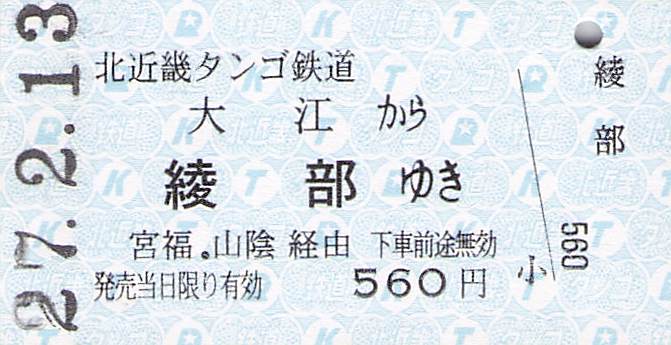 ホーム > きっぷ情報ライブラリ > 05-近畿地方 > (26)京都府 > 京都丹後鉄道(北近畿タンゴ鉄道)