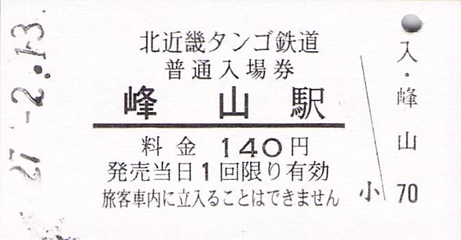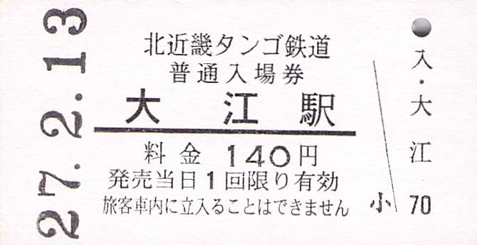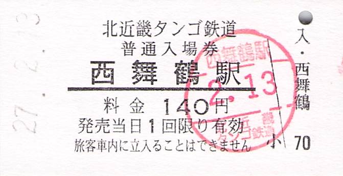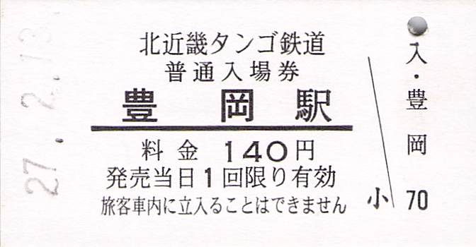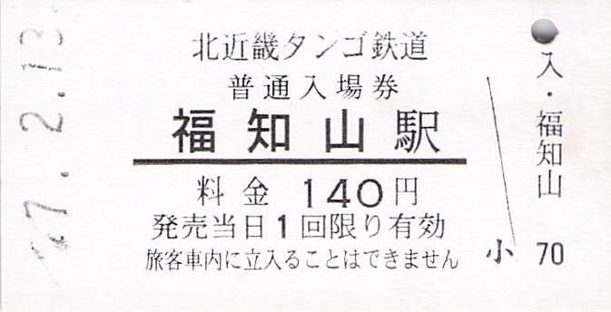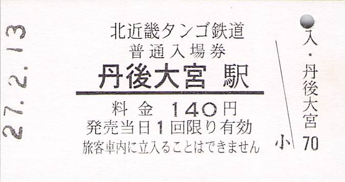 今回は、京都丹後鉄道の前身の北近畿タンゴ鉄道の硬券入場券を紹介します