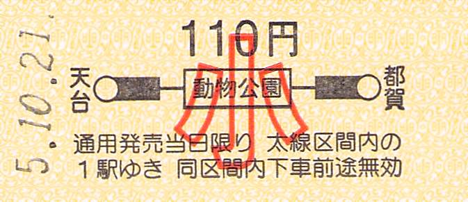 今回は地図式乗車券です。イベントの開催される動物公園駅からの硬券乗車券です