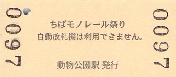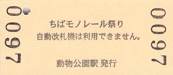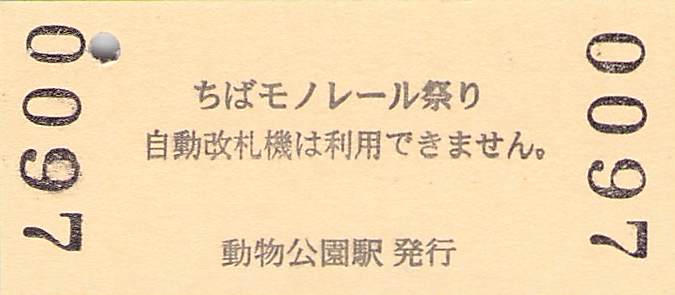 今回は千葉都市モノレールのちばモノレールまつりで発売された硬券乗車券を紹介します。