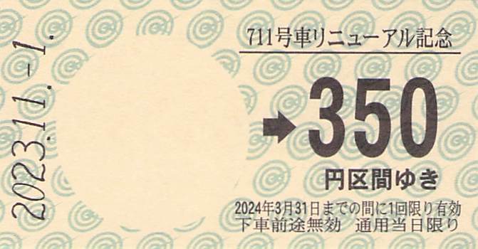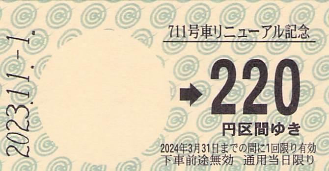 711号車リニューアル記念の乗車券を入手しましたので紹介します