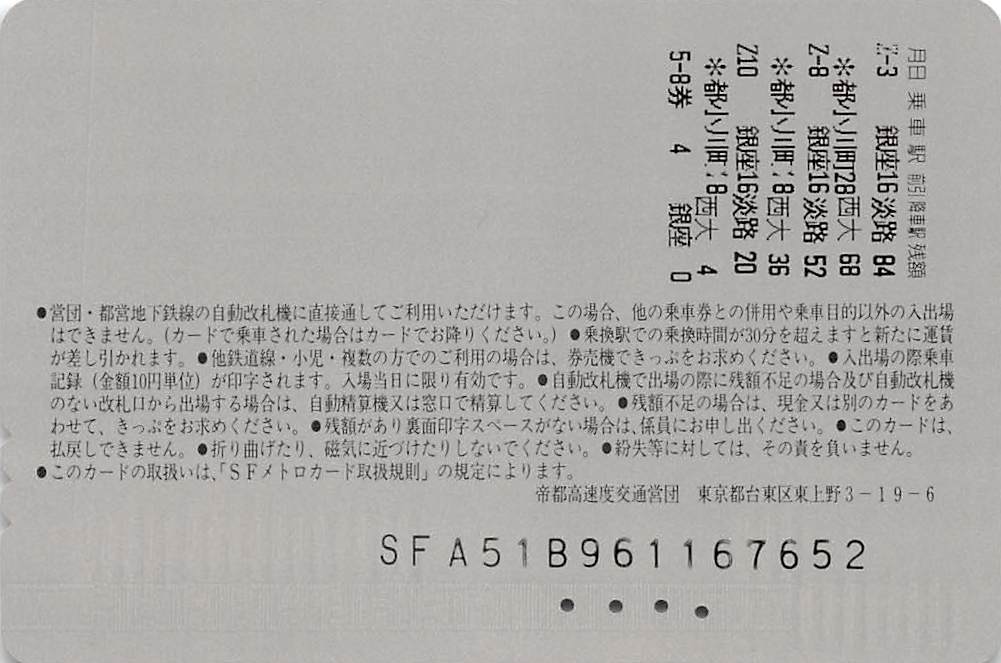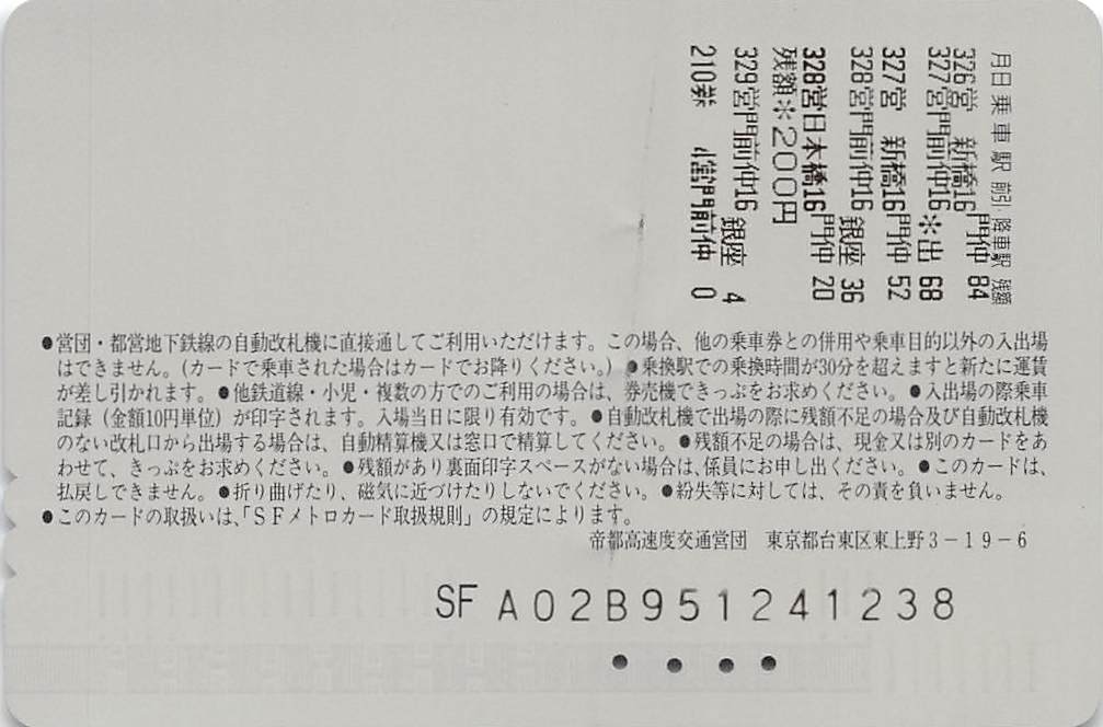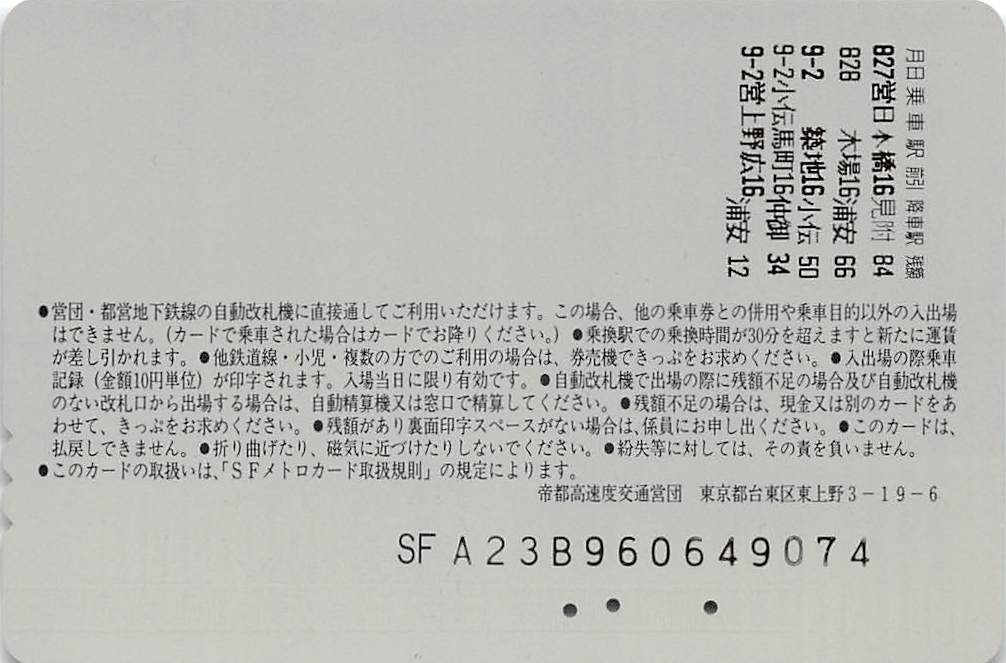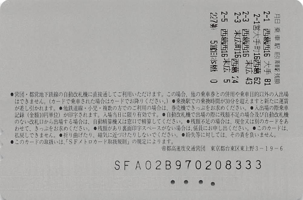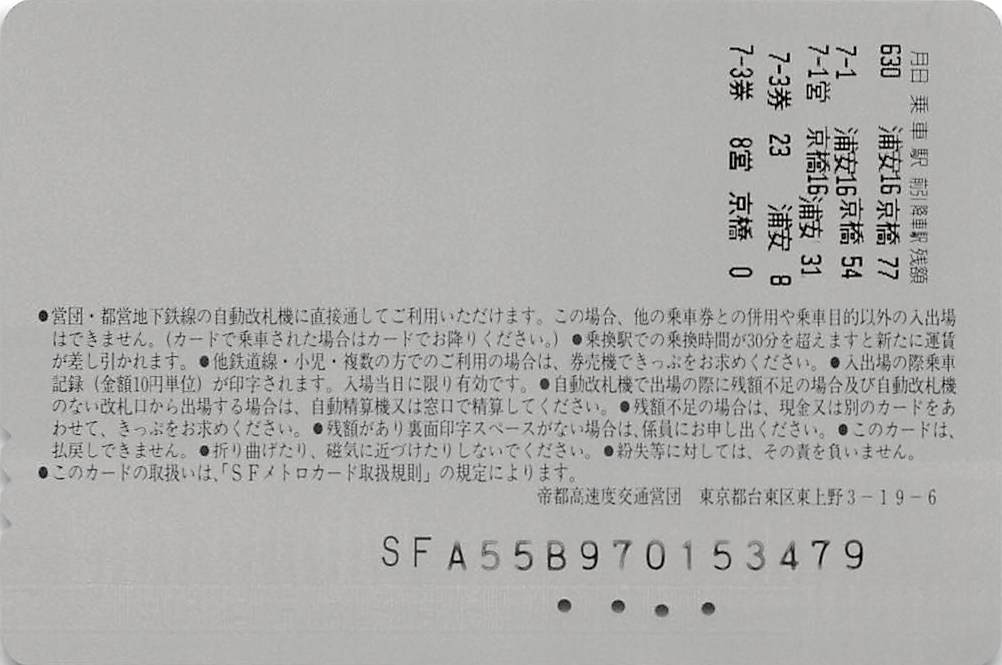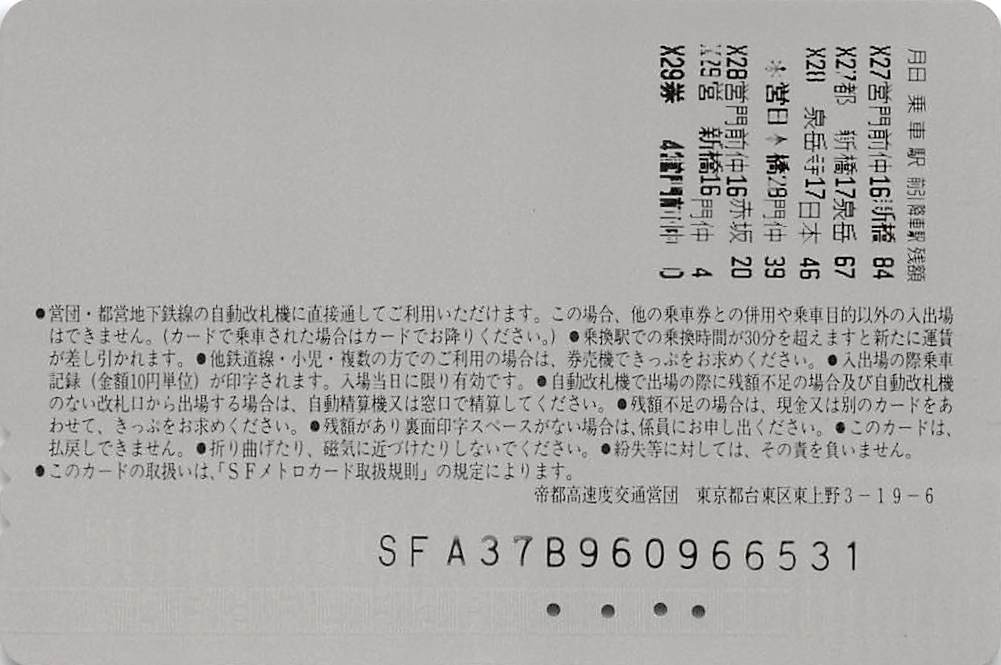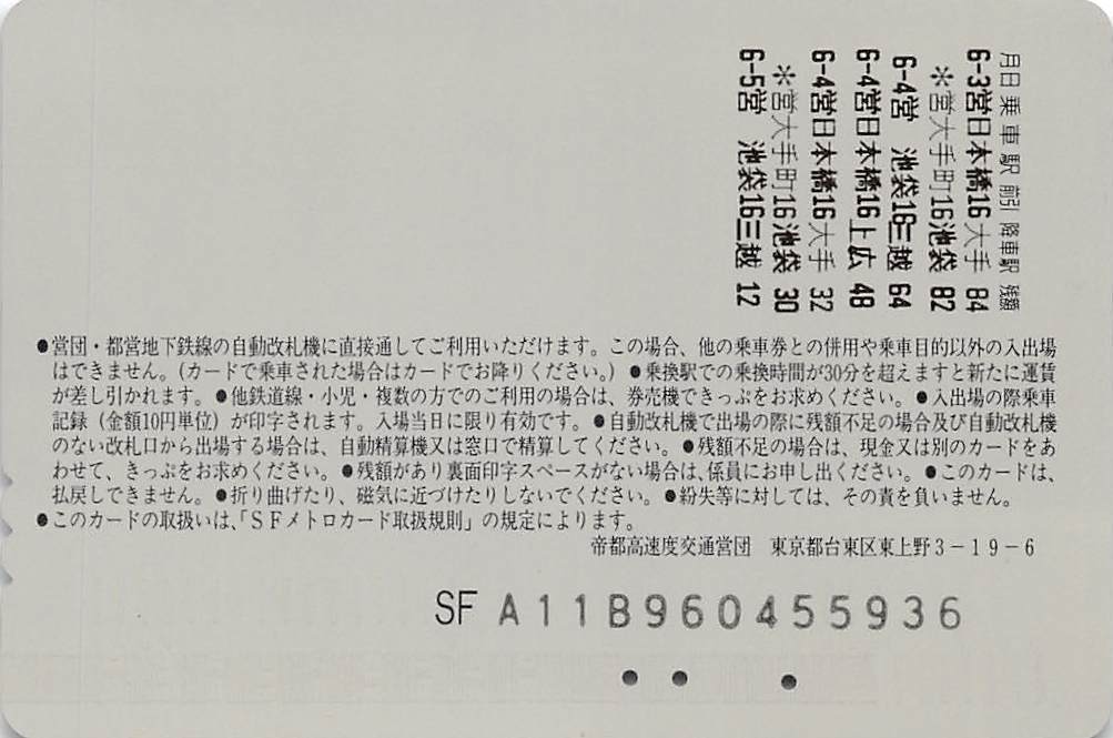 営団地下鉄-SFメトロカード(車両写真1000円券)