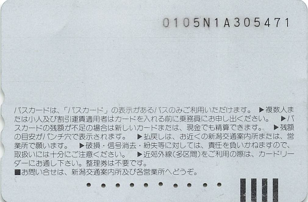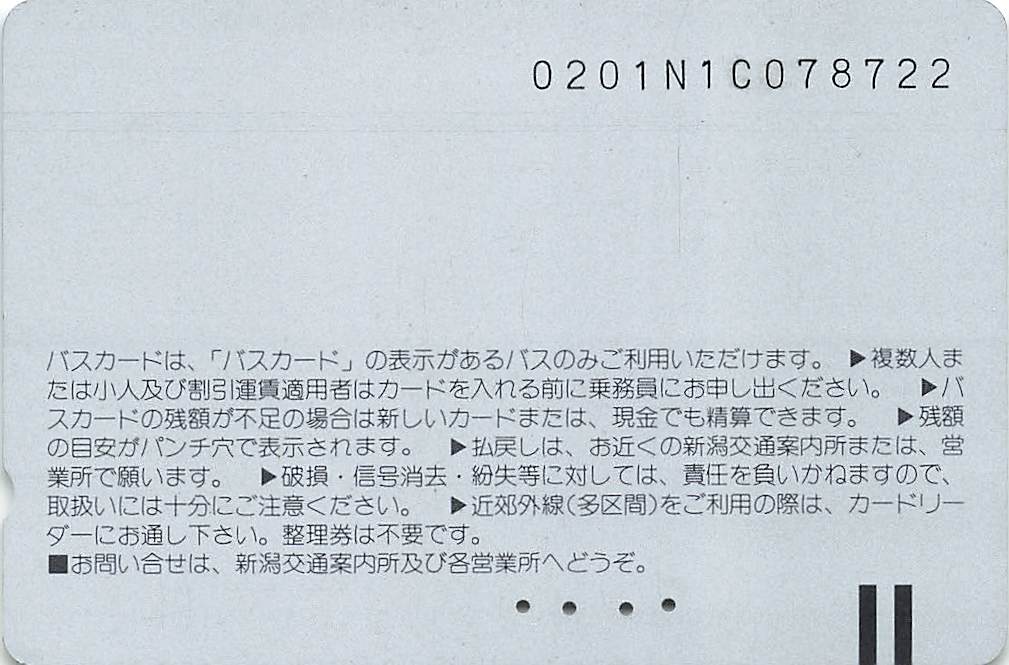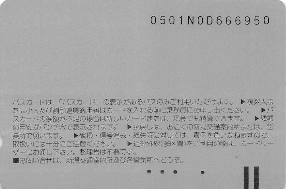 今回は新潟交通のバスカードを紹介します。同社でも現在は磁気カード式乗車券は廃止されてしまっています