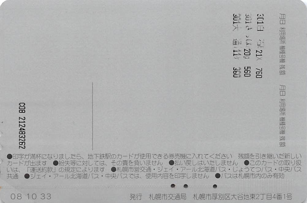 今回は札幌市交通局の「共通」ウィズユーカードを紹介します。