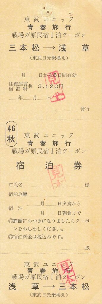 今回は、東武ユニック関連のクーポンを紹介します。東武ユニックとは、旧東武トラベル(現東武トップツアーズ)のブランドで、東武鉄道の往復と宿泊がセットになった旅行商品が扱われていたようです