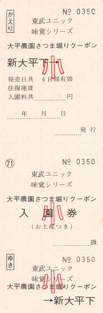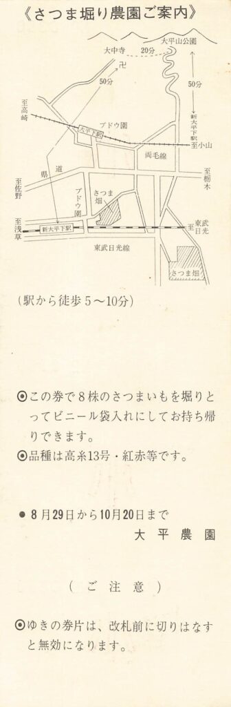 こちらは味覚シリーズです。詳細は不明ですが、往復乗車券とさつまいも掘り体験券がセットになっています