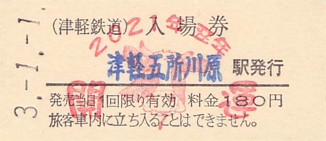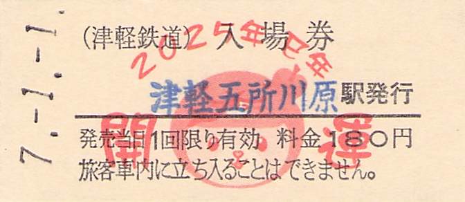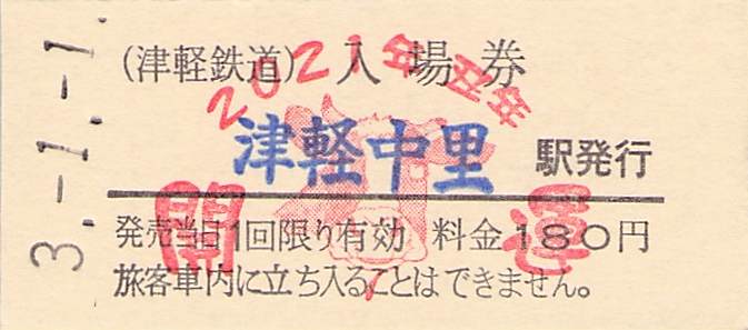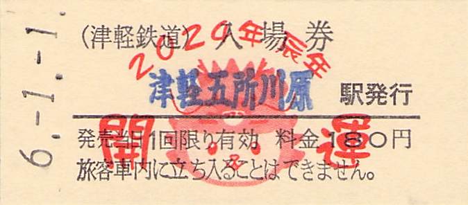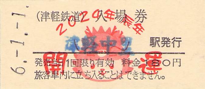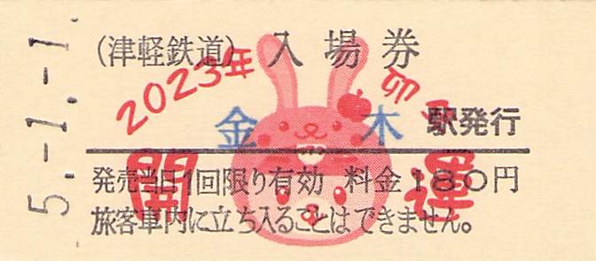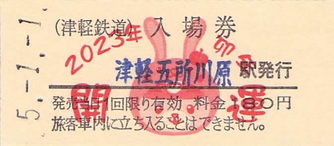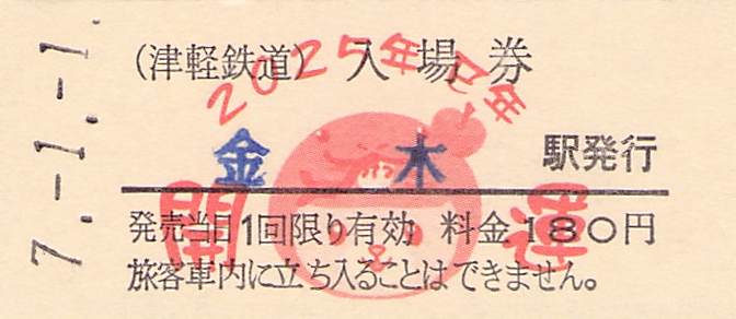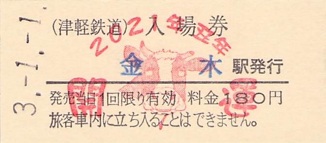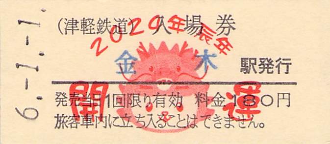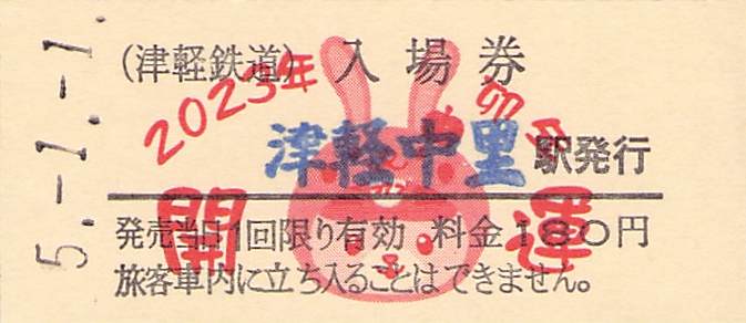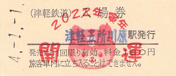 津軽鉄道では毎年、干支をモチーフにした開運入場券を発売しています。津軽鉄道のオンラインショップでは過去に発売されたものも含め、発売日、駅名を(津軽五所川原、金木、津軽中里の中から)指定して購入することが可能です。