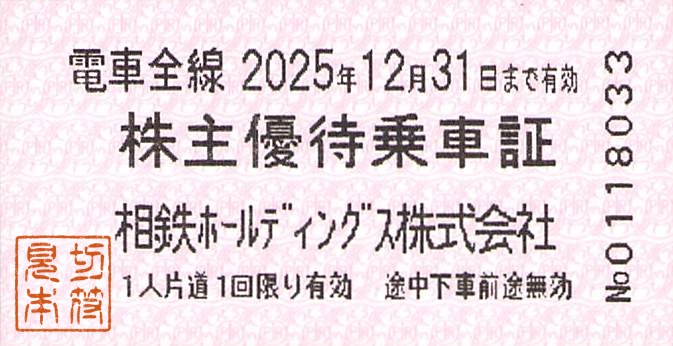 2019年の株主優待乗車証も手元にありました。年によって地紋の色が異なるようです
