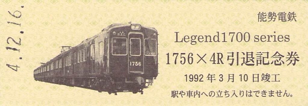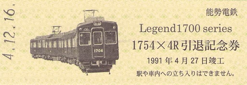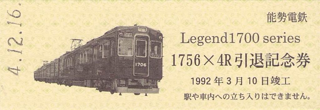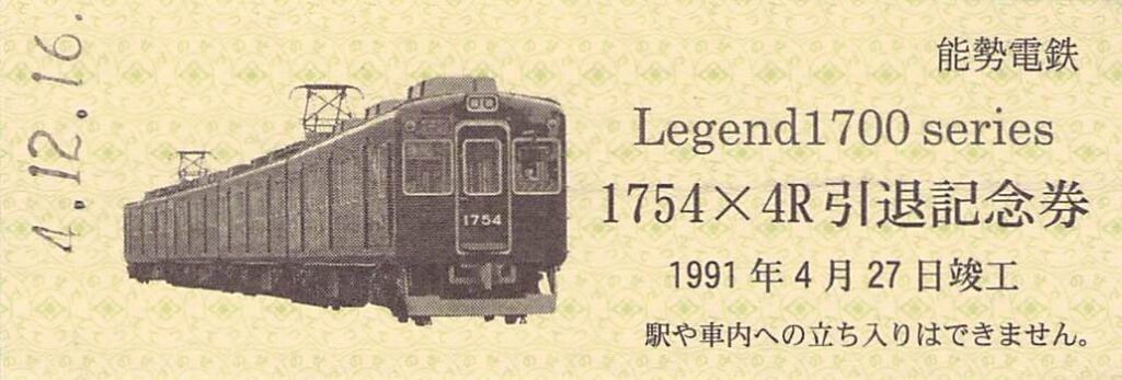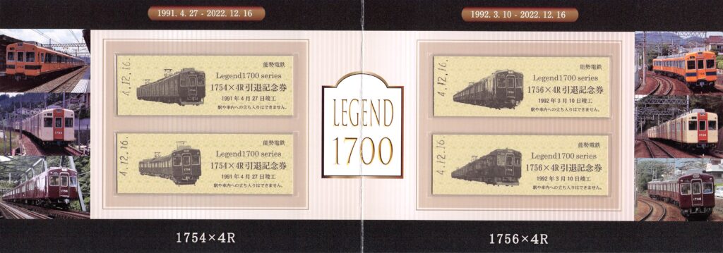 能勢電鉄-レジェンド1700Seriesさよなら記念硬券