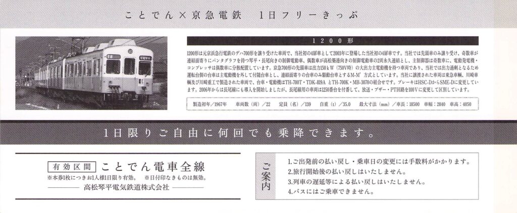 高松琴平電気鉄道-ことでん×京急電鉄1日フリーきっぷ
