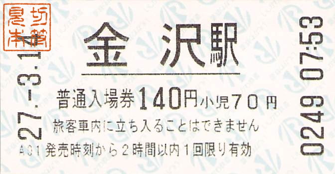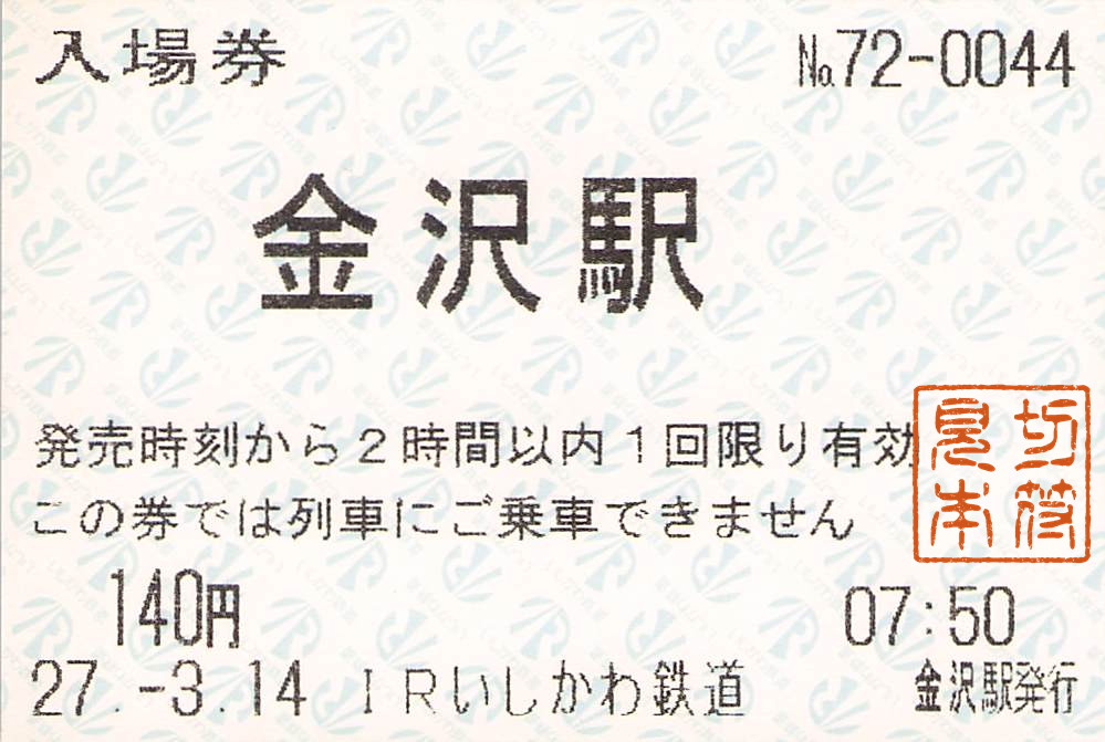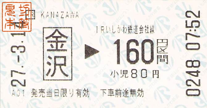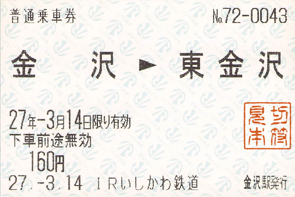 IRいしかわ鉄道-端末券・券売機券