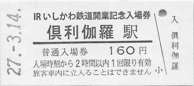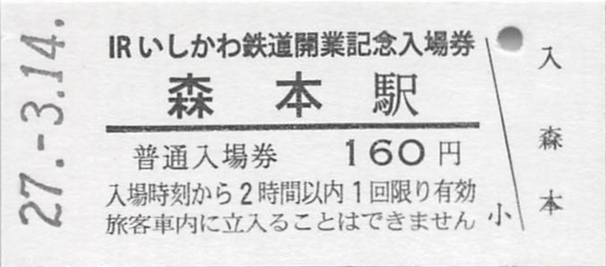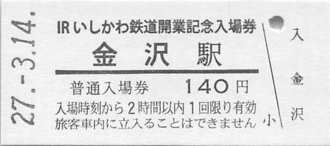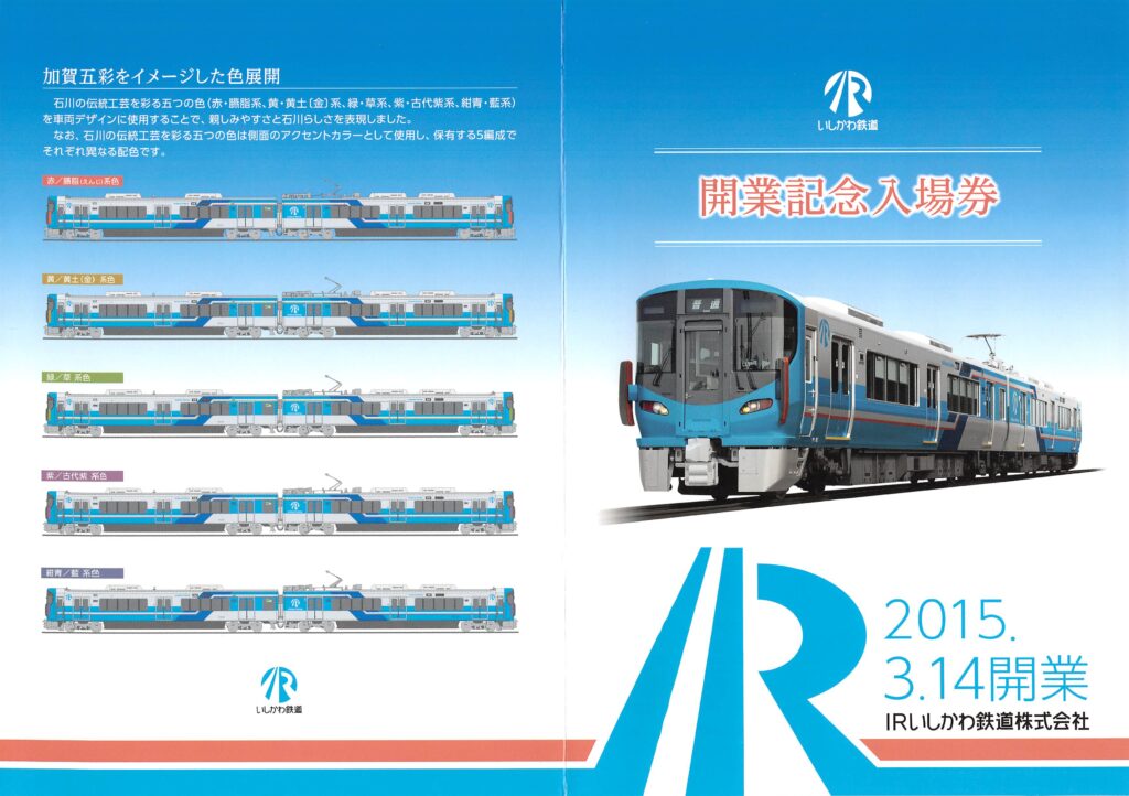今回はIRいしかわ鉄道の2015年の記念入場券を紹介します