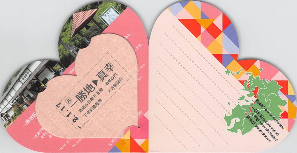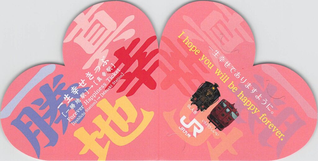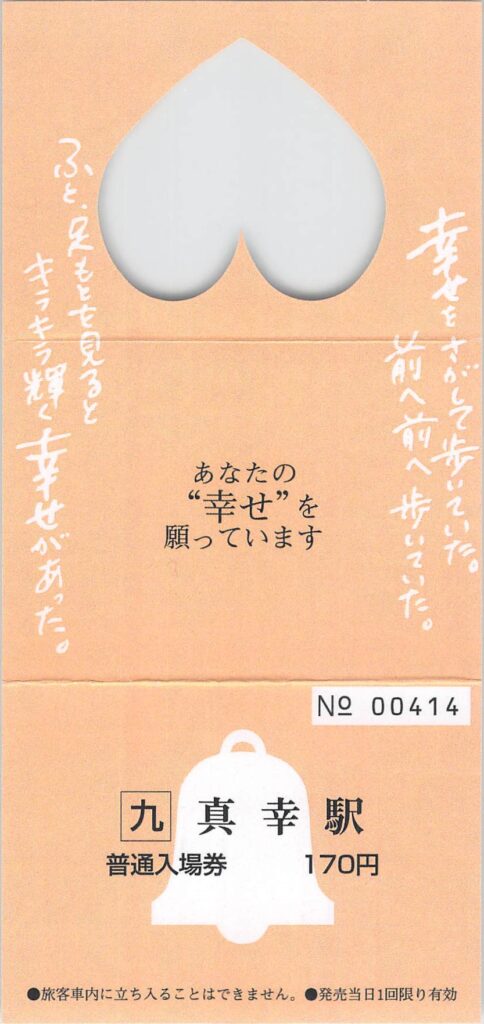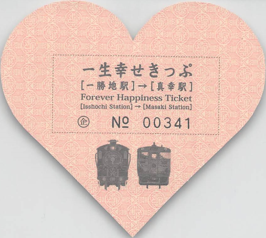 一生幸せきっぷ、ハート形の硬券です