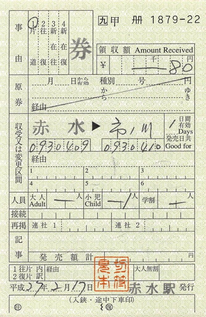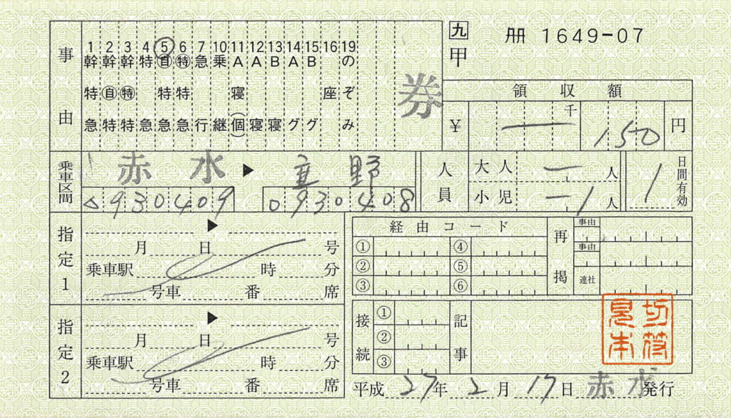 赤水駅で2015年に購入した乗車券類を紹介します。同駅及び豊肥本線は2016年に熊本地震により被災し、その後豊肥本線は復旧しましたが、簡易委託は復活しませんでした