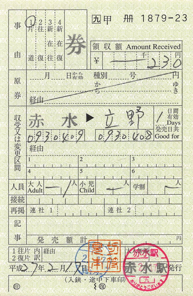 補充片道乗車券はありませんでしたが、発駅常備の補充往復乗車券は扱っていました