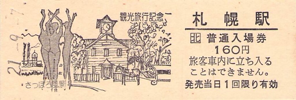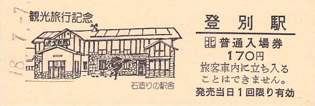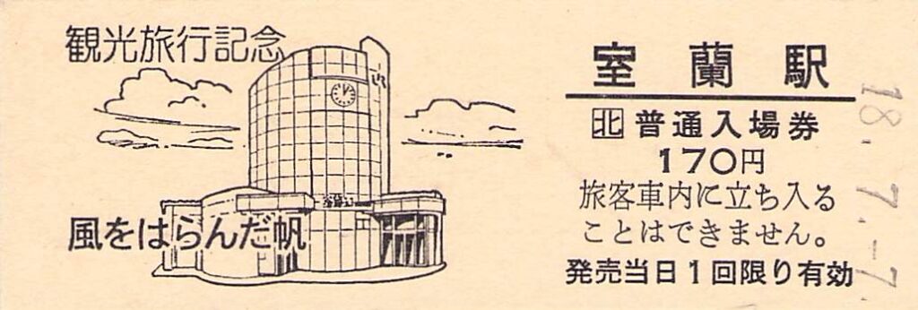 160円時代と170円時代とでカラー入場券のデザインが変更されました。駅舎建て替えに伴うものと思われます。