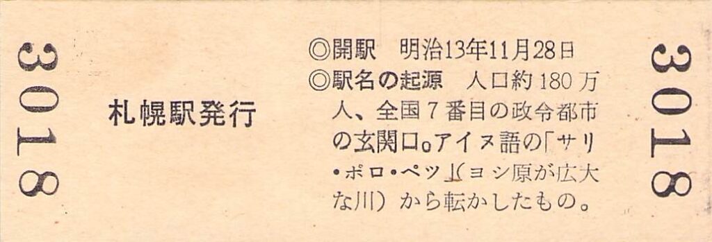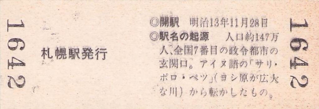 JR北海道で過去に発売していたD型硬券入場券です。駅によってはカラー印刷の硬券も存在しました。