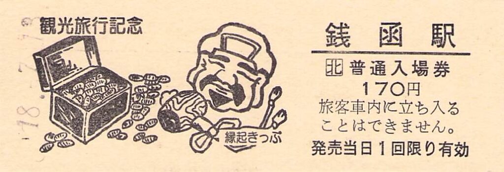 国鉄時代は使用済み切符の持ち帰りはできなかったそうで、このような記念入場券の場合は、ミシン線で入場券部分(回収)とイラスト部分(持ち帰り)を切り離せる仕様になっていたようです
