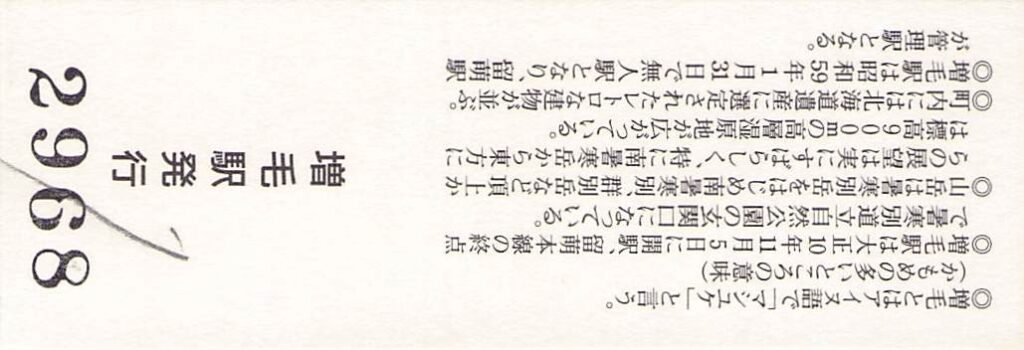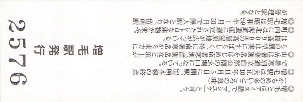 増毛駅は無人駅でしたが、当時は留萌駅で発売していました