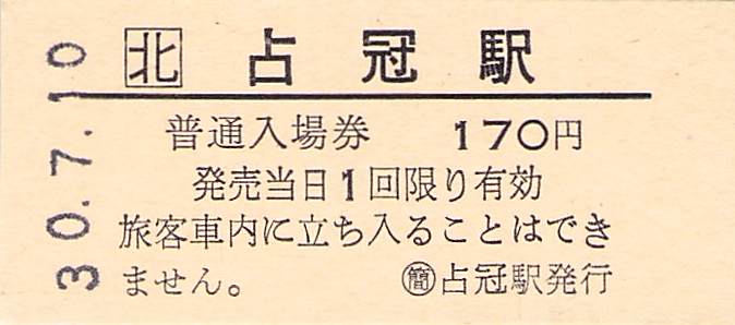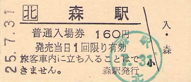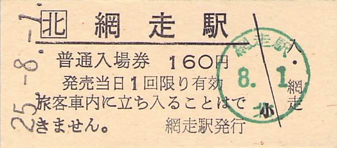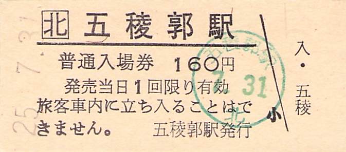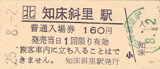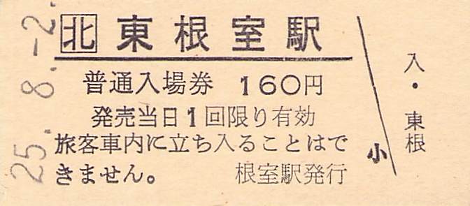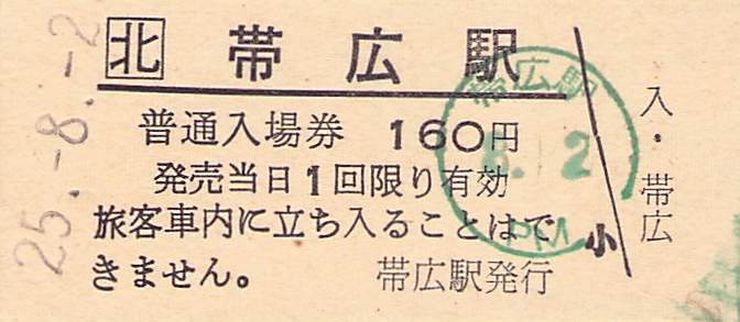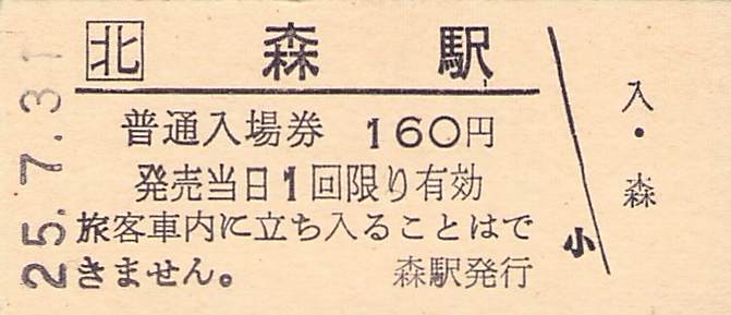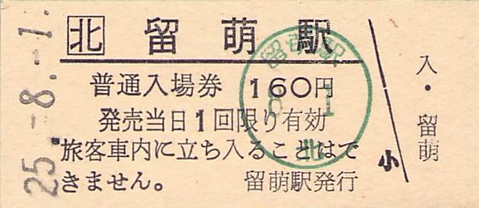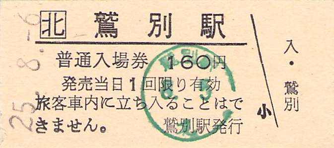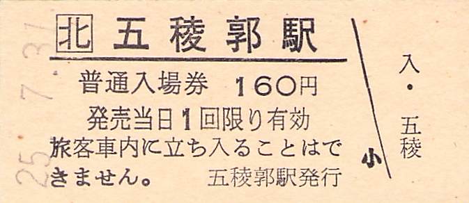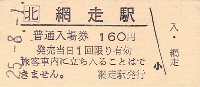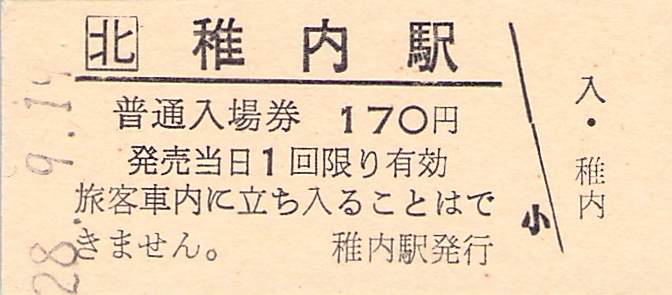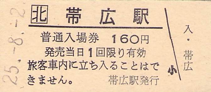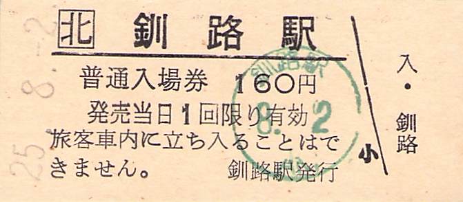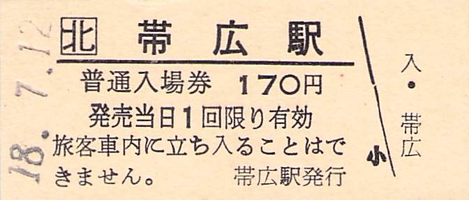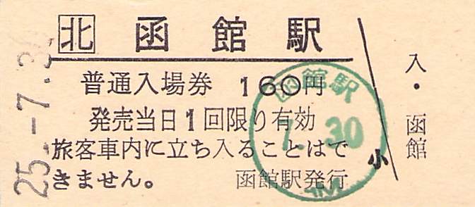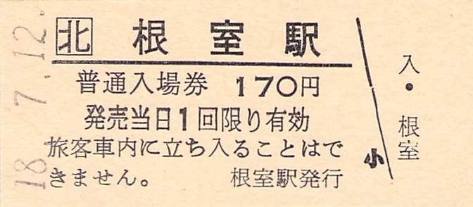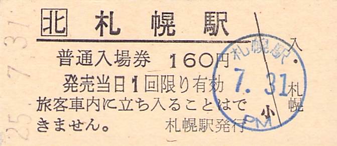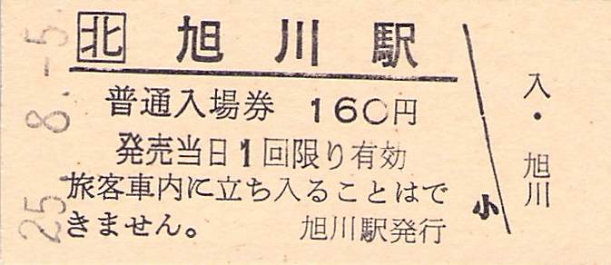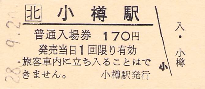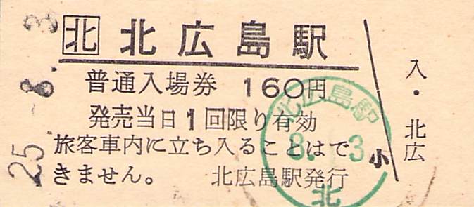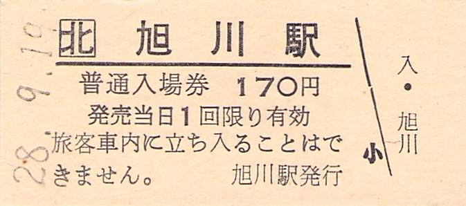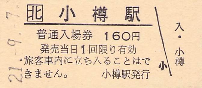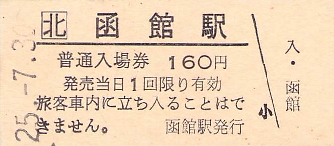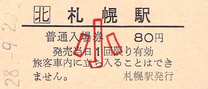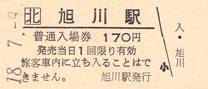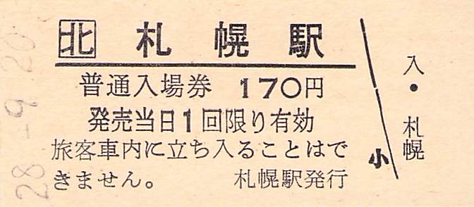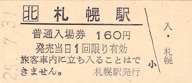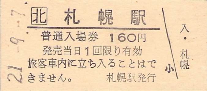 ホーム > きっぷ情報ライブラリ > 00-JR/国鉄 > (1)JR北海道 > 硬券入場券