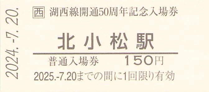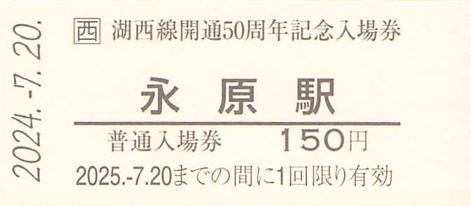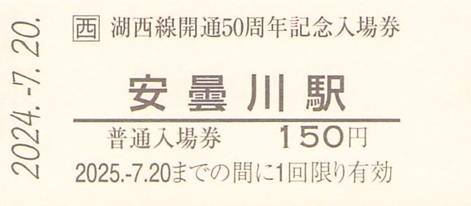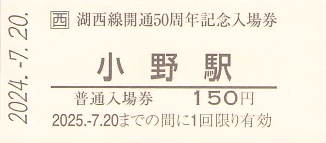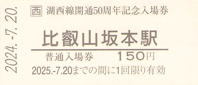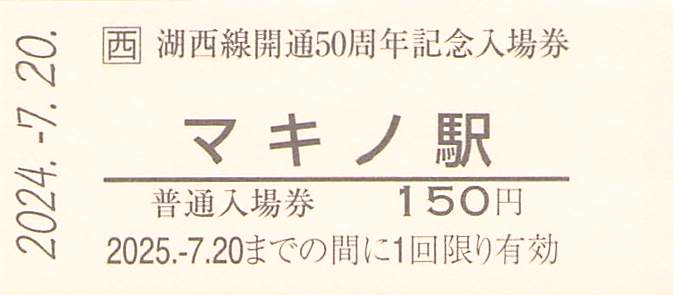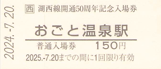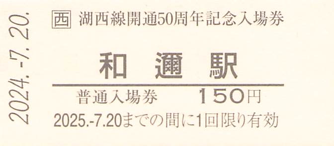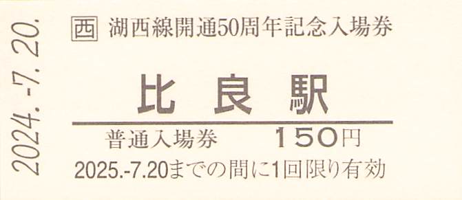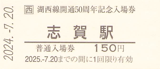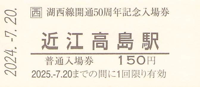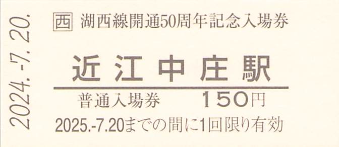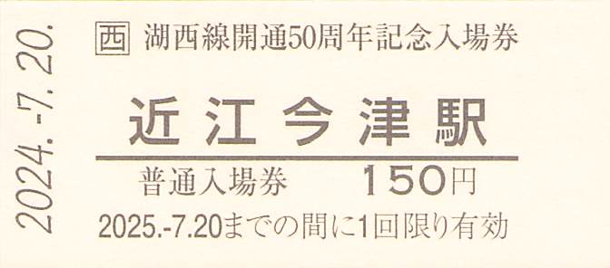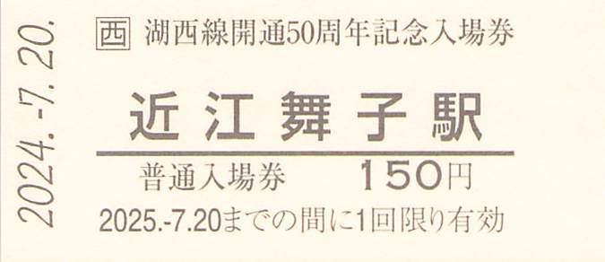 JWEST MALLで購入した、湖西線開業50周年記念入場券です