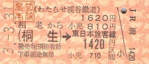 わたらせ渓谷鉄道-東武線連絡硬券乗車券(廃札)