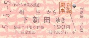 わたらせ渓谷鉄道-5並びきっぷ 神戸から五反野ゆき