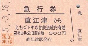 えちごトキめき鉄道-国鉄形観光急行運転再開記念 急行券セット-