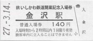 IRいしかわ鉄道-IRいしかわ鉄道開業記念入場券