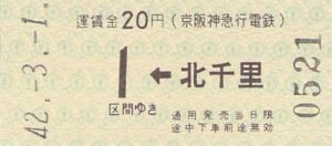 阪急電鉄-自動改札機実用化南千里-北千里間延伸開業50年記念入場券